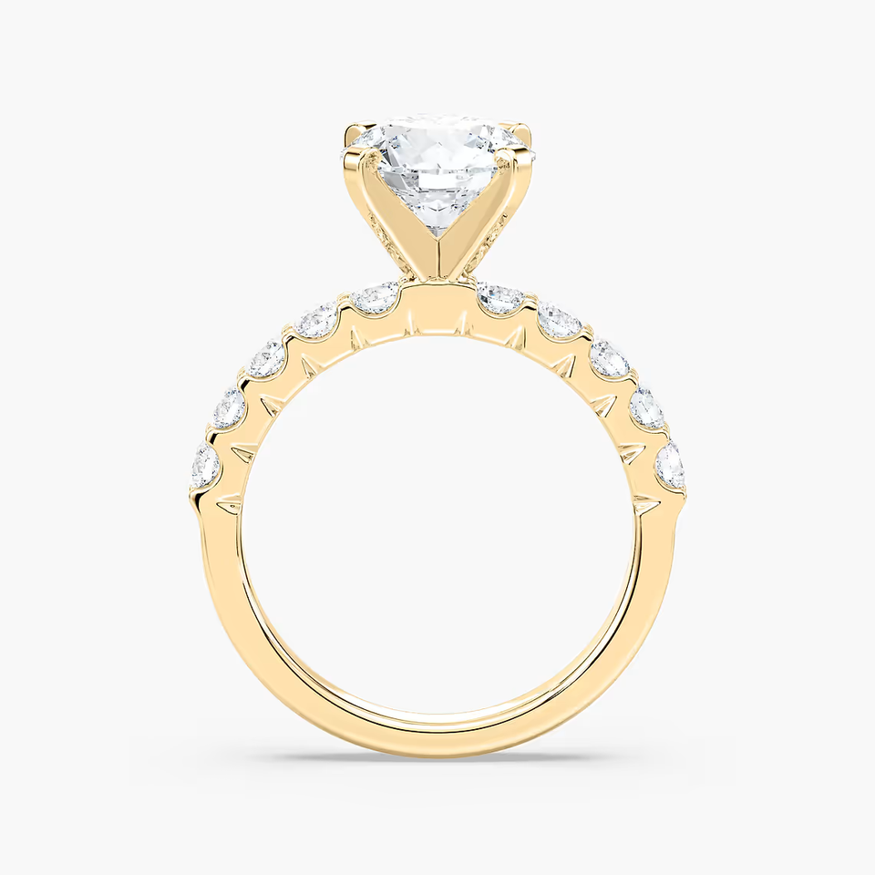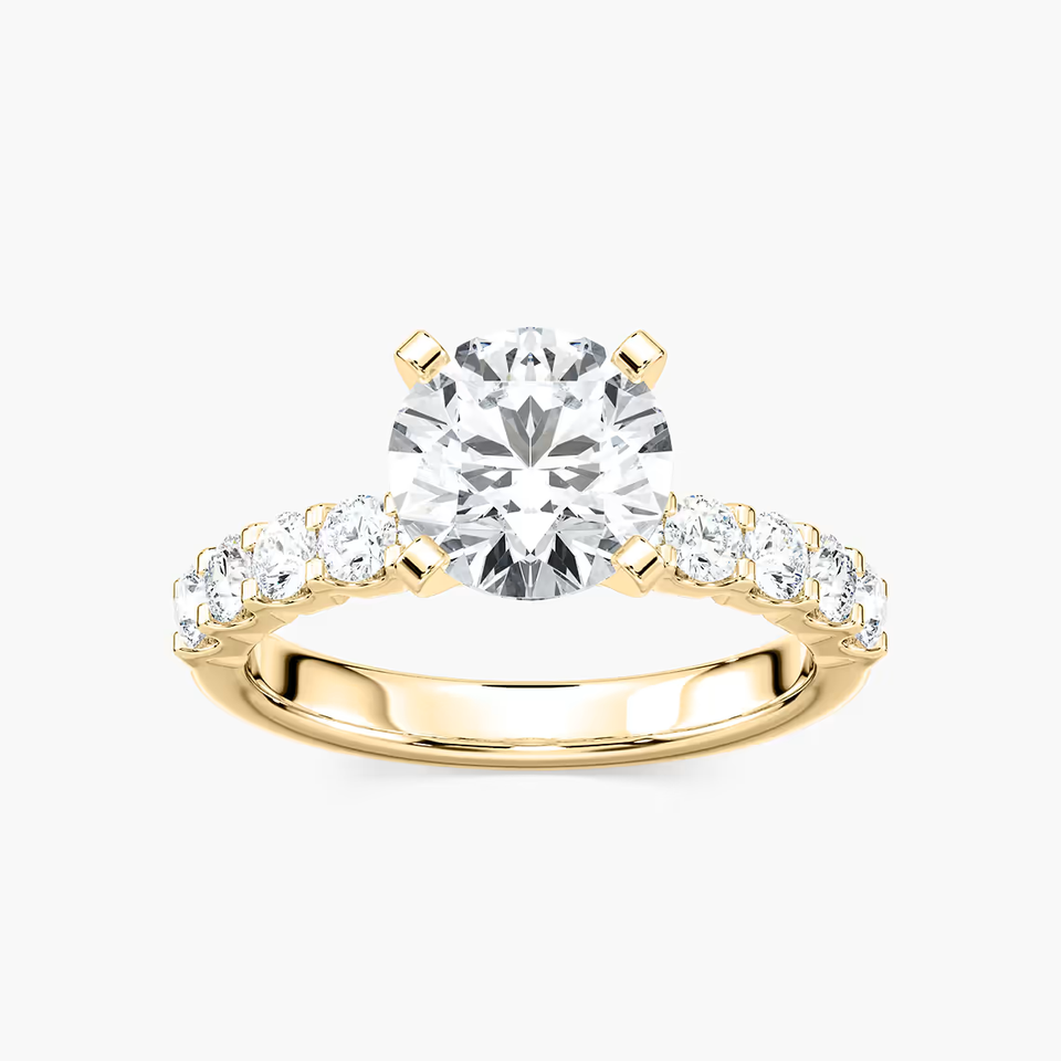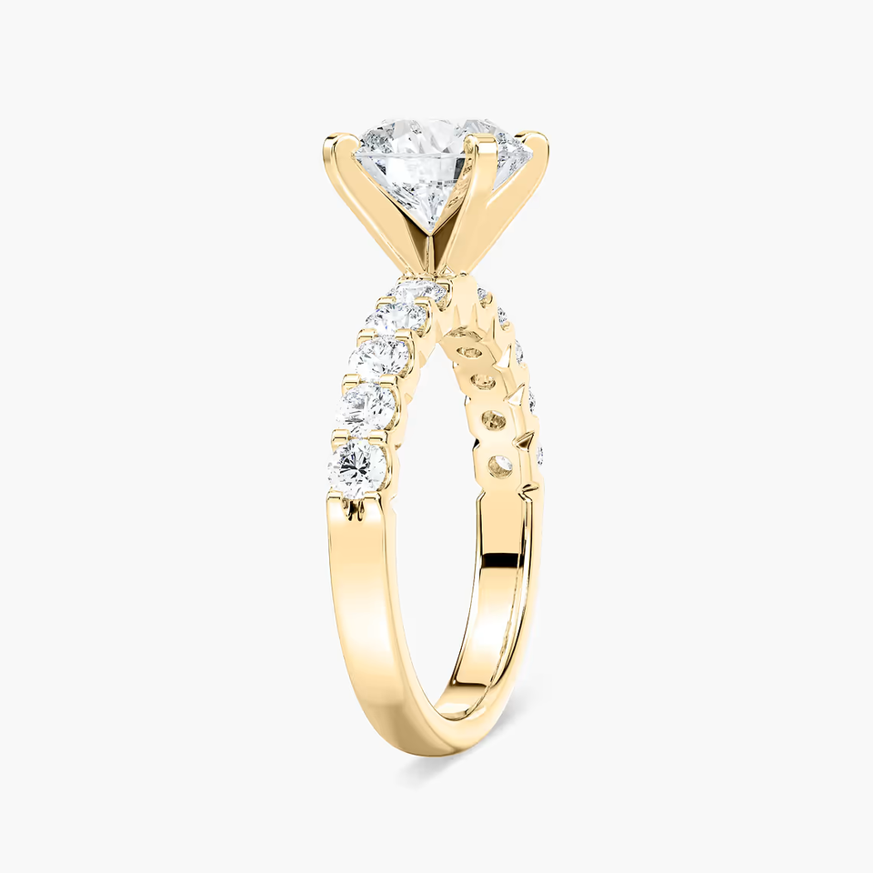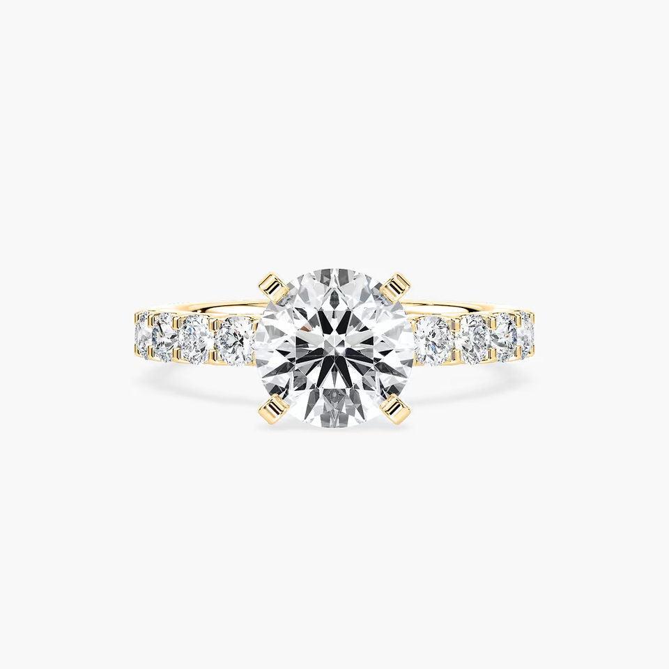 Anillo de Compromiso con Diamante Cultivado en Laboratorio de Corte Redondo de 2.50 CTW, Certificado IGI, Oro Sólido de 14K, Banda Pavé, Anillo de Novia Solitario para Mujer