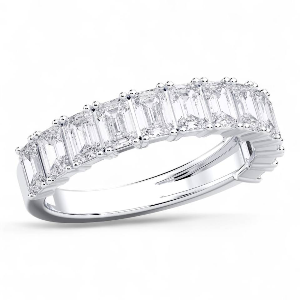 Anillo de bodas con pavé de eternidad completa de diamante cultivado en laboratorio de corte esmeralda de 2,50 quilates de, hecho en platino, unisex