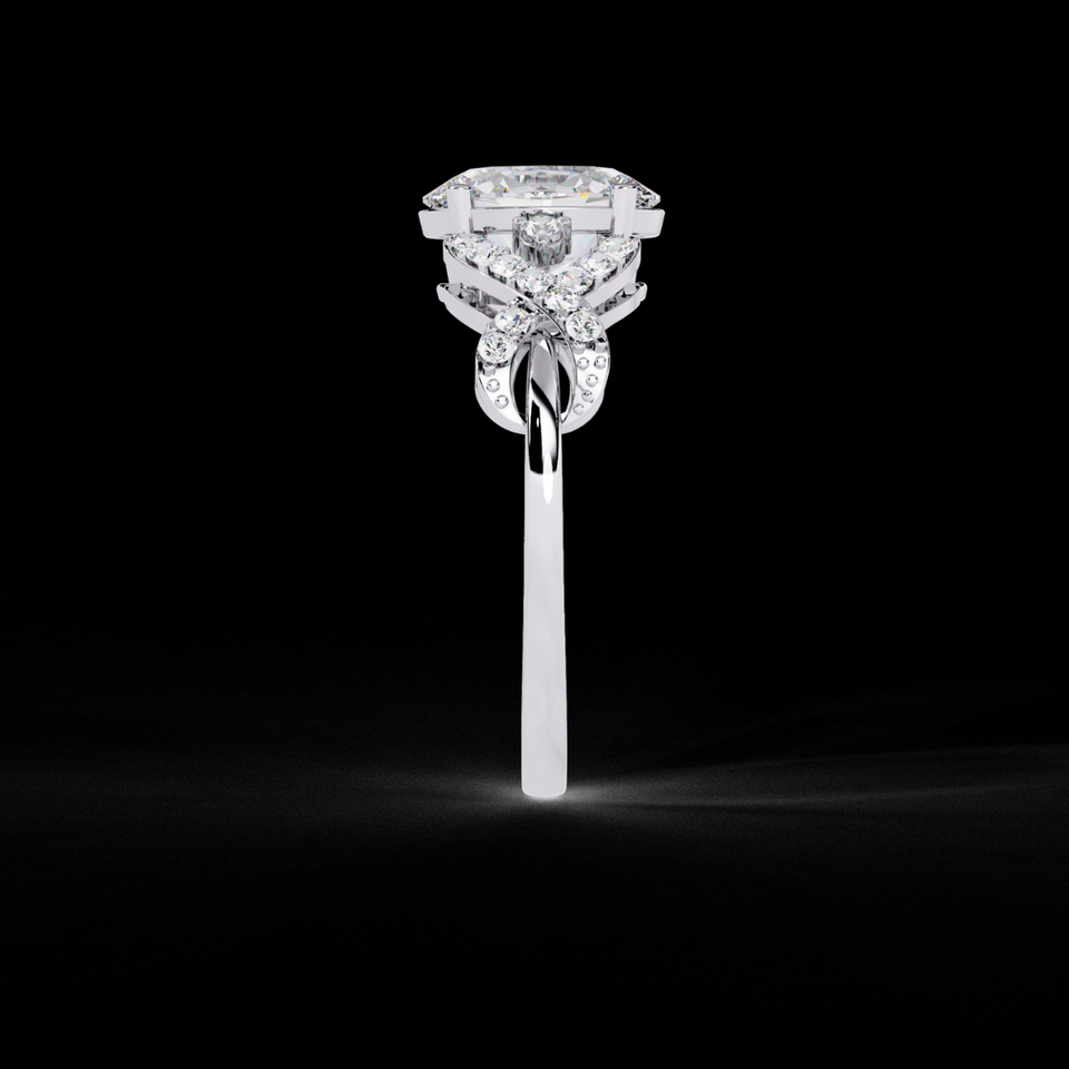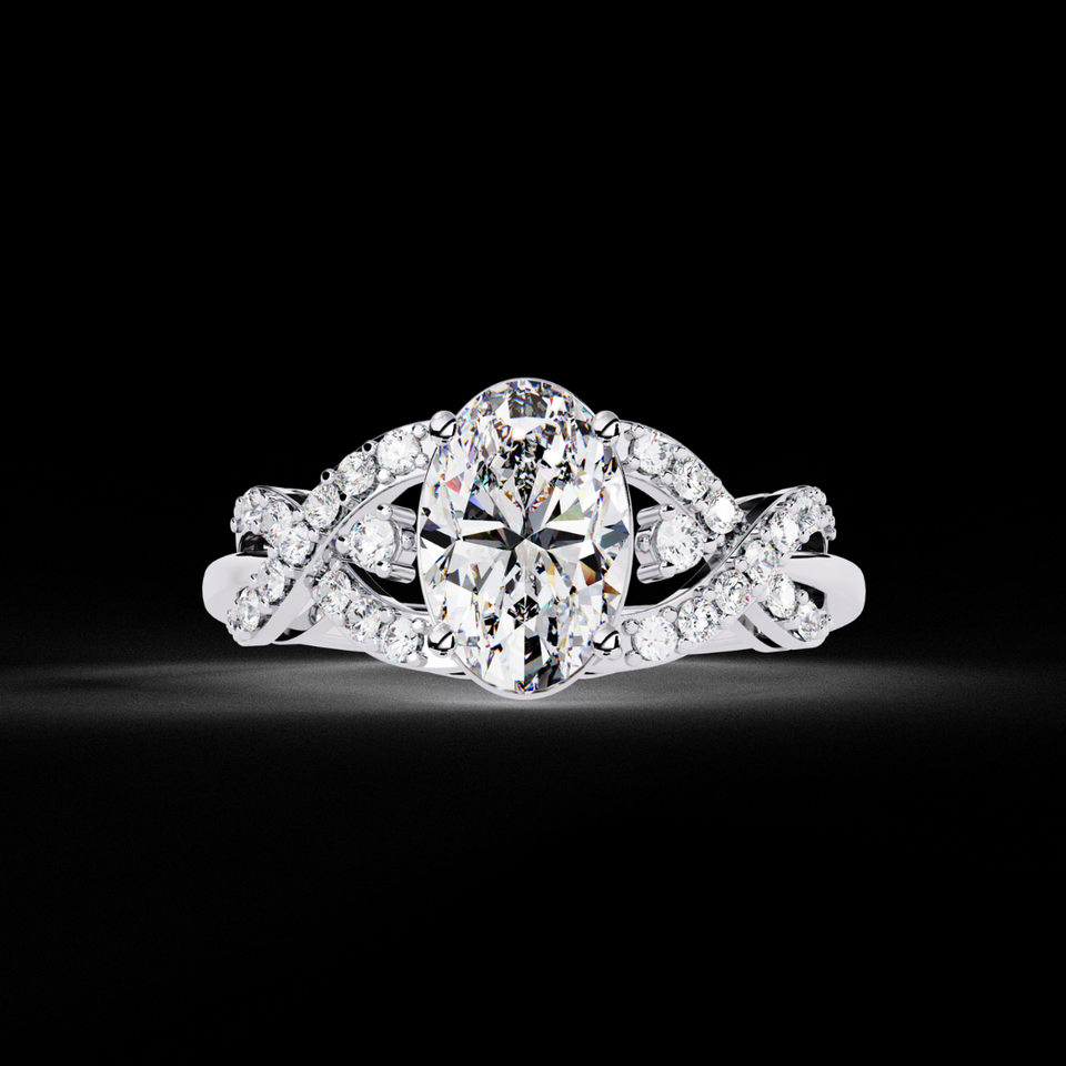 Anillo Infinito con Diamante Cultivado en Laboratorio de Corte Ovalado de 2.50 Ct, Oro Blanco de 14k, Banda Trenzada con Pavé, Certificado IGI