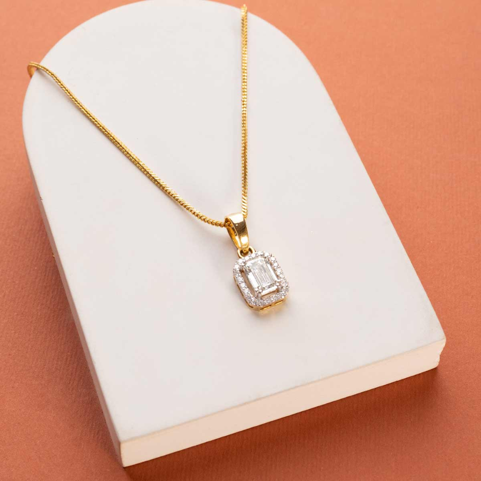 Nombre del producto:El laboratorio radiante del corte 2.50Ct creció el diamante con el colgante del oro amarillo del halo 14K