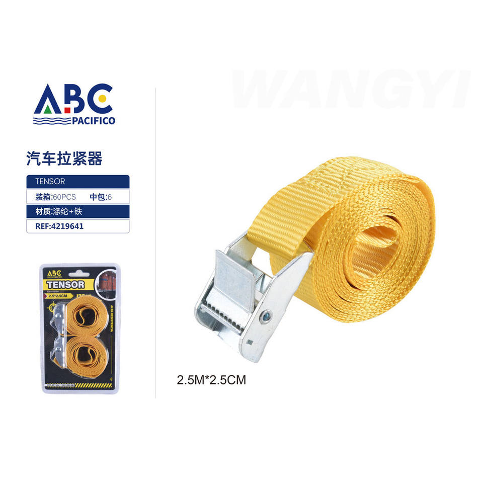 2,5 m * 2,5 cm Rachet Tie Down Amarre Correa de amarre Control de carga Cinturón de poliéster de acero con accesorios de extremo de gancho en J doble Certificado por GS