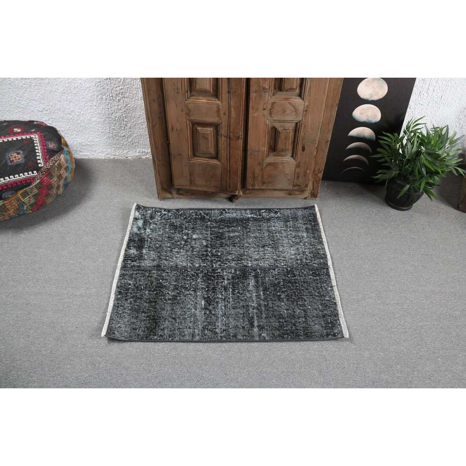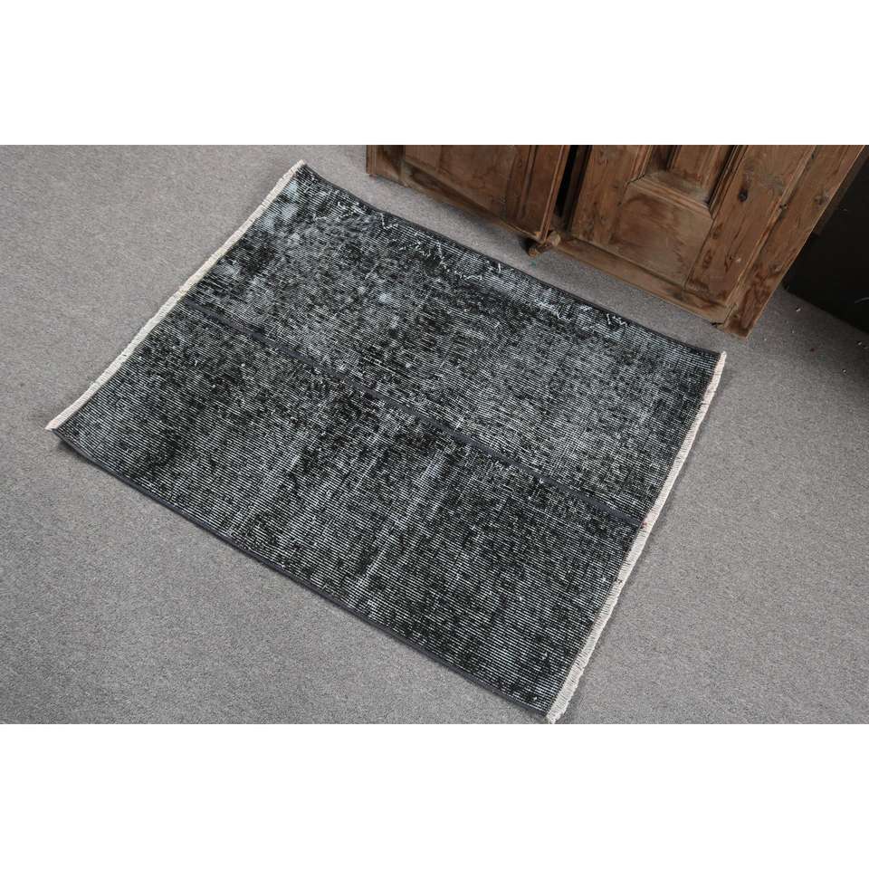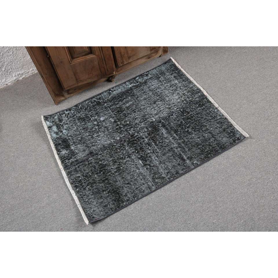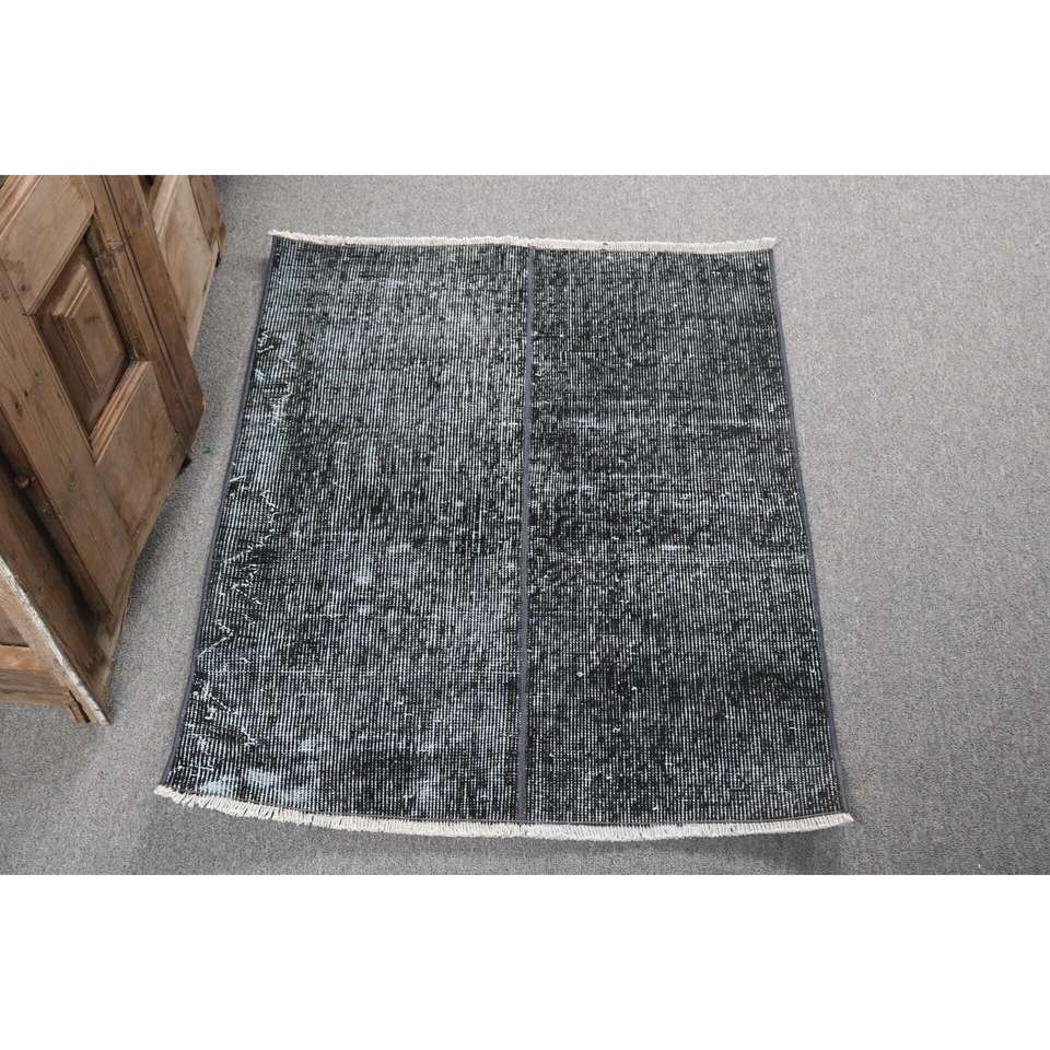 Alfombra Turca de 2.5x3.1 pies, Alfombra Pequeña Vintage, Alfombra con Estampado Animal Negro