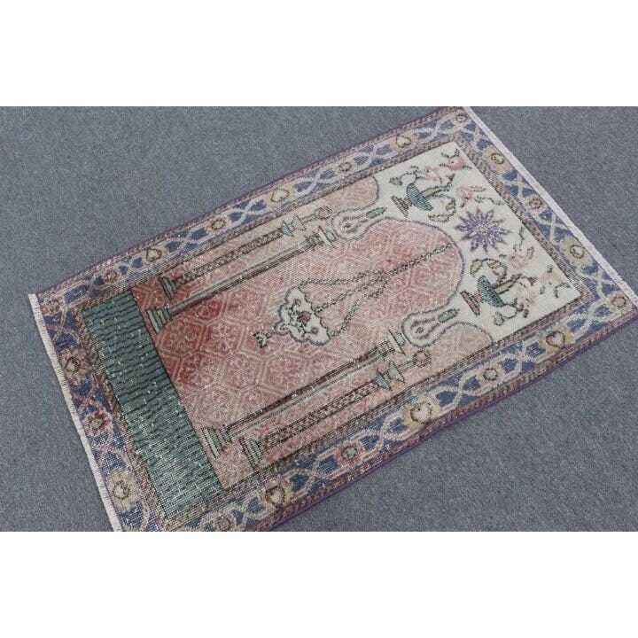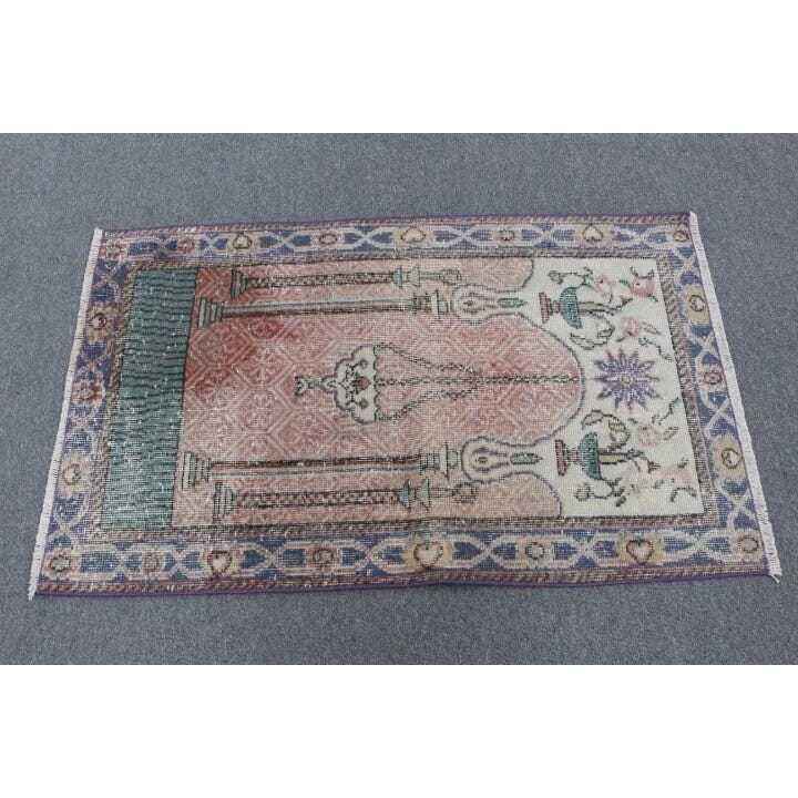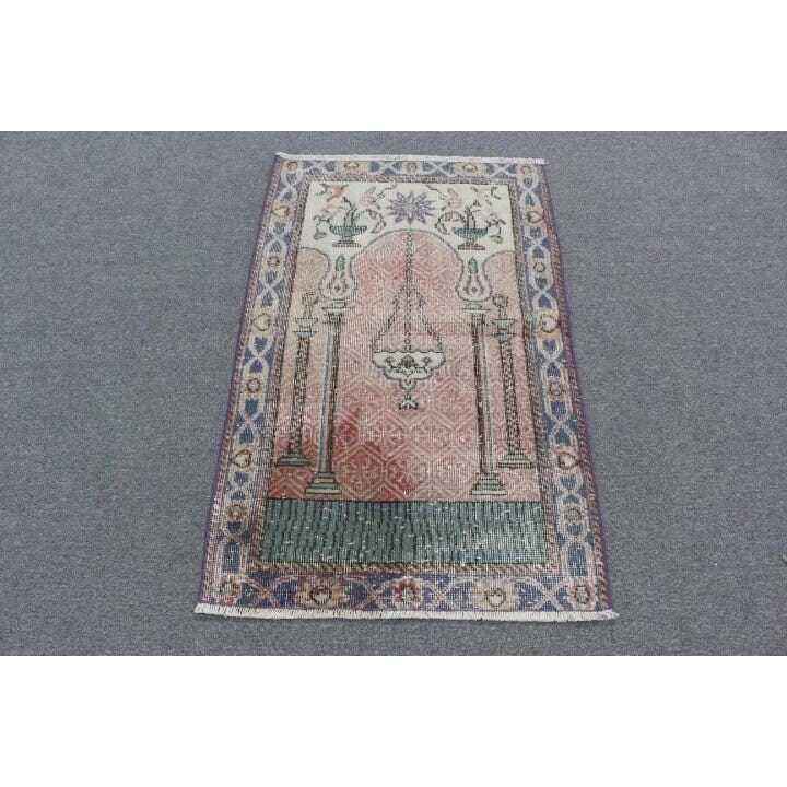 Alfombra Vintage de 2.5x4 pies, Alfombra Azul Sólida de Lana