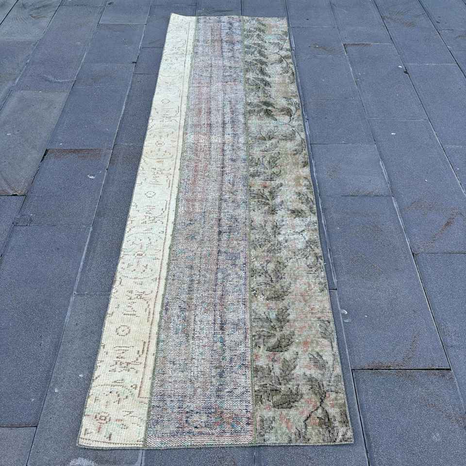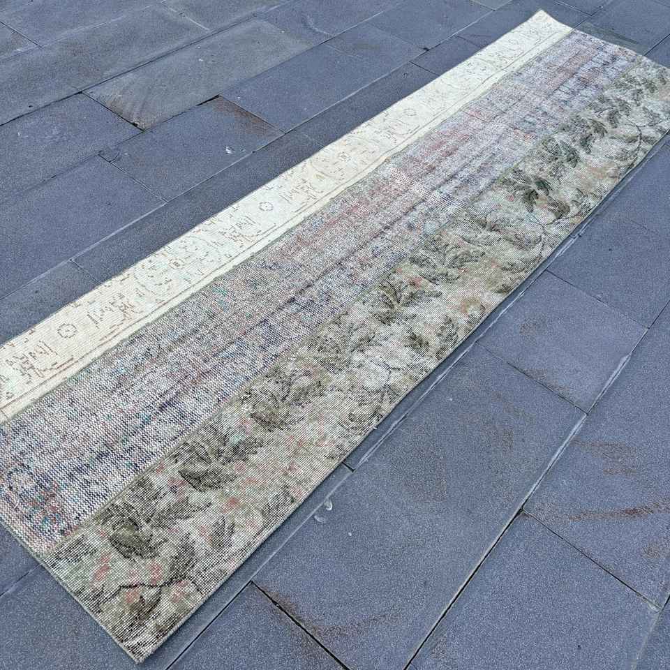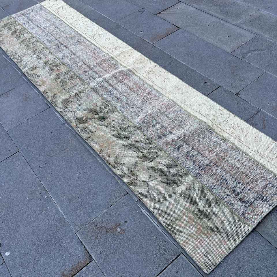 Alfombra Vintage de 2.5x8.8 pies, Alfombra Azul Marroquí de Lana