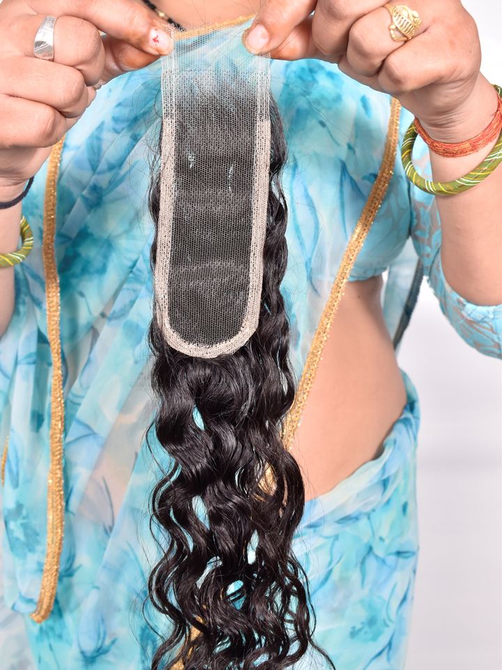 Extensiones de Cabello Humano Ondulado Profundo para Mujer, 2*6 HD, Cierre de Cabello Virgen Remy Natural Negro, Cutícula Alineada, Cabello Indio al por Mayor