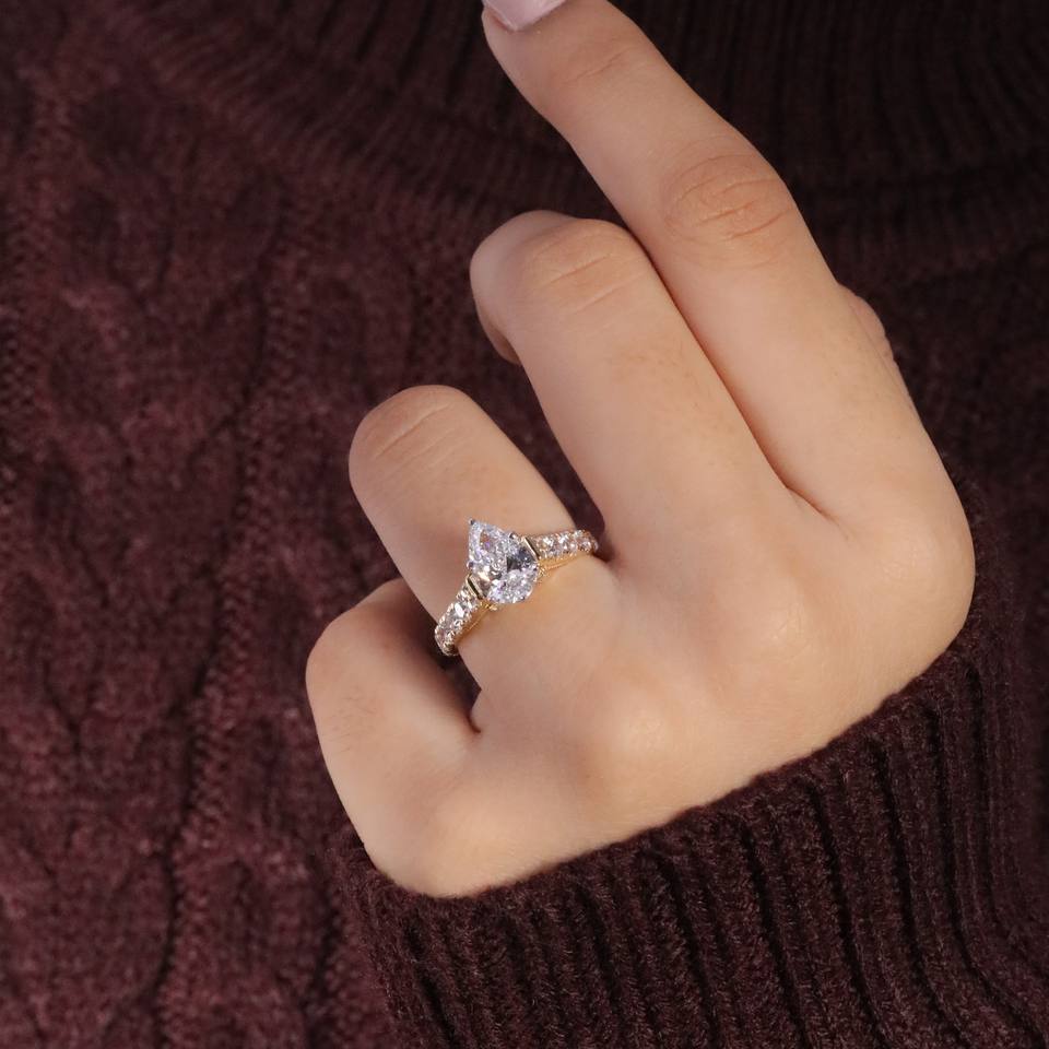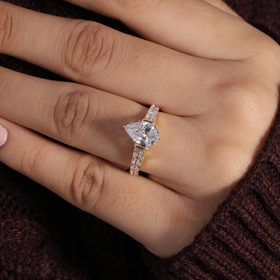 Anillo de Boda Clásico y Moderno con Circonita Cúbica de Laboratorio de 2.67 Quilates, Chapado en Oro de 14 Quilates, Forma Redonda y Brillante de Pera, Hecho Principalmente de Latón