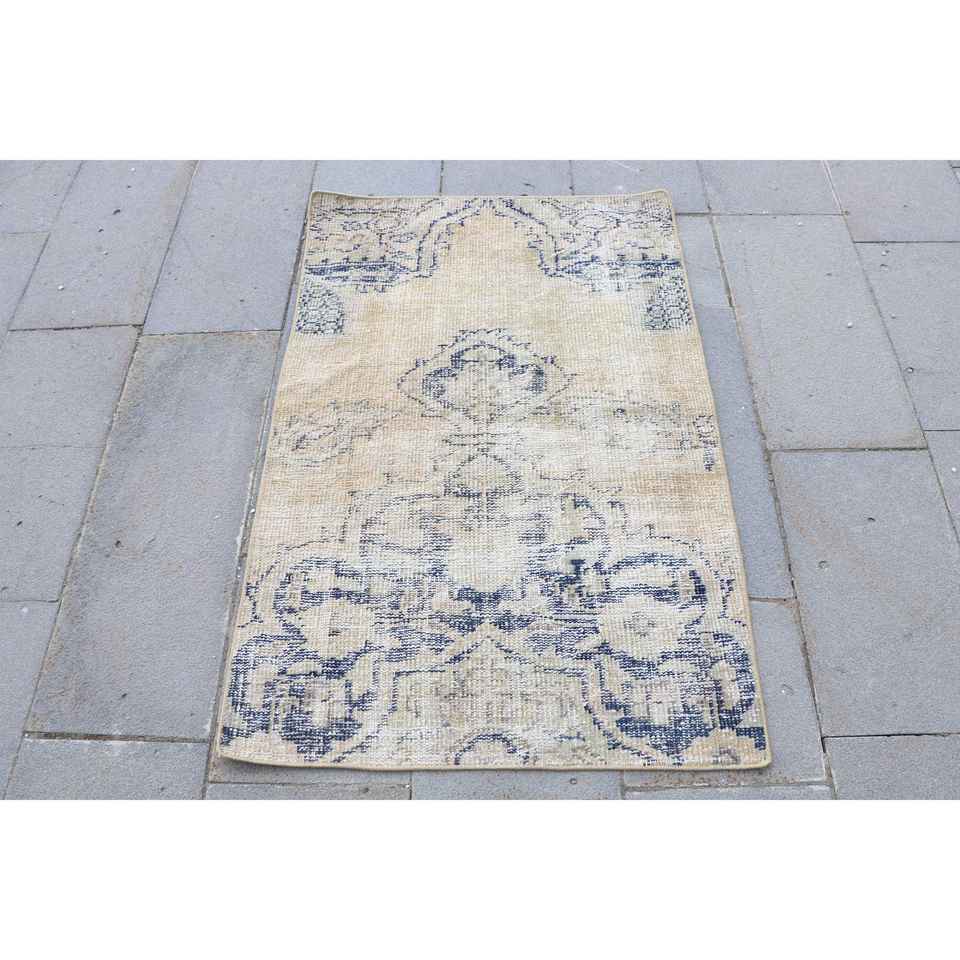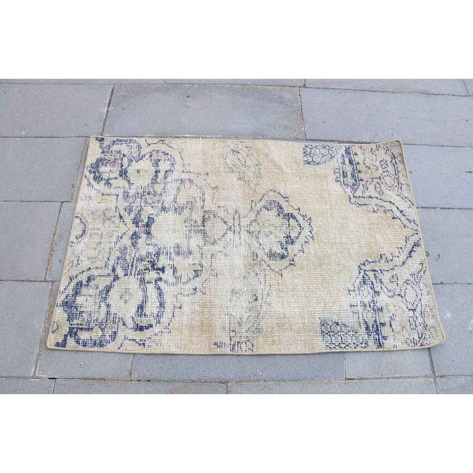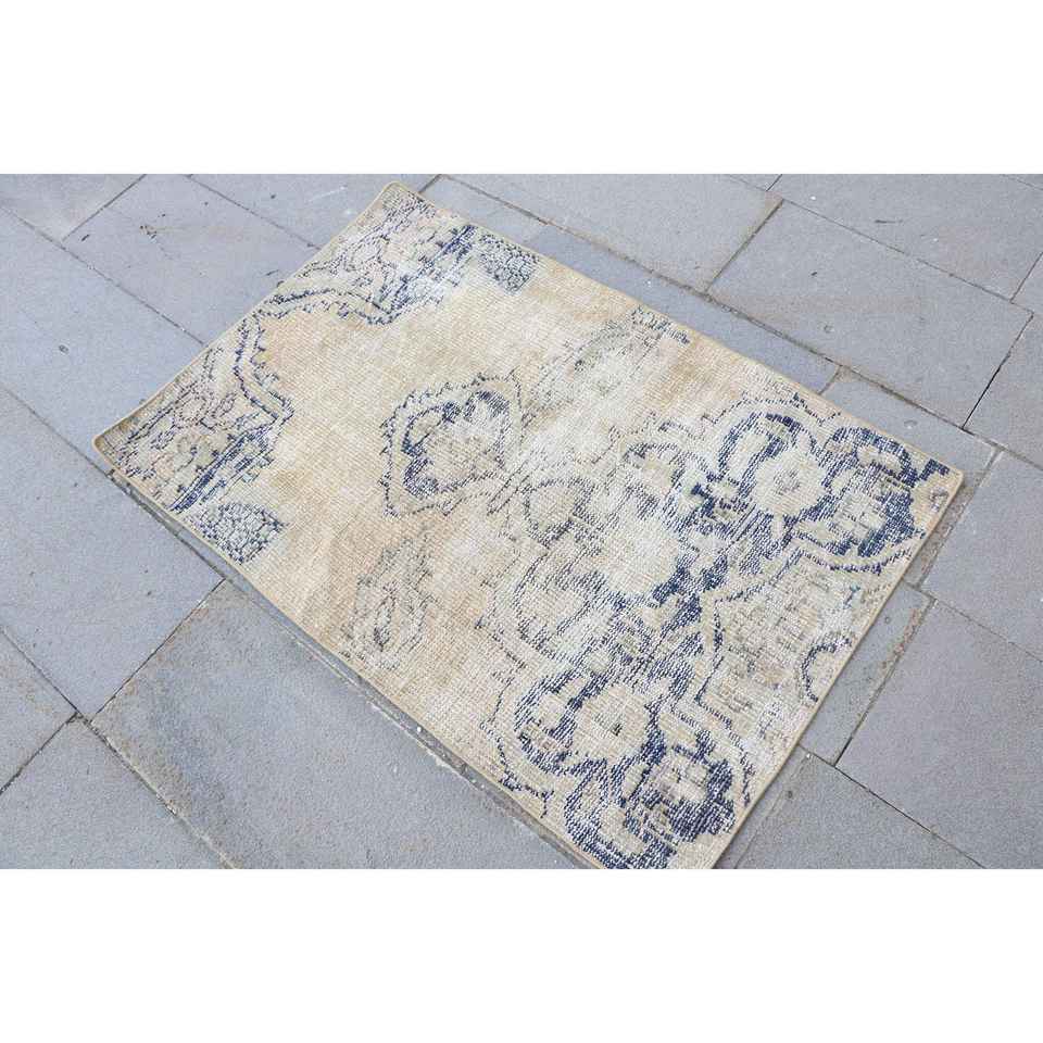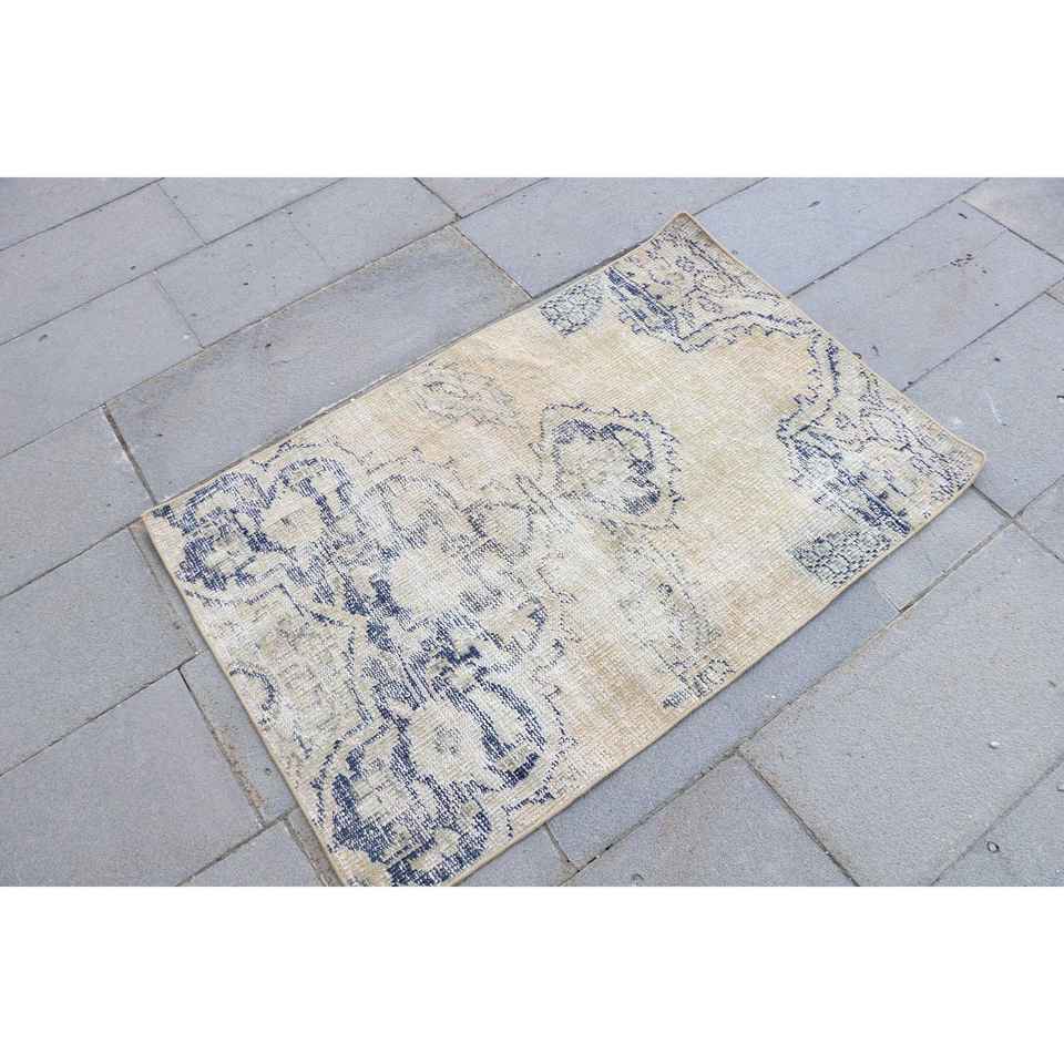 Alfombra de 2.6x4 pies, Alfombra Turca, Alfombra Vintage de Lana Azul con Diseño de Patchwork