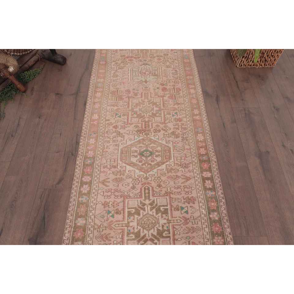 Alfombra Oriental Vintage de Lana Rosa Turca de 2.6x9.1 pies, Diseño de Patchwork Ecológico con Respaldo de Látex