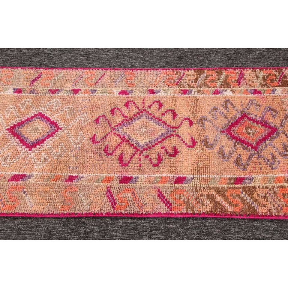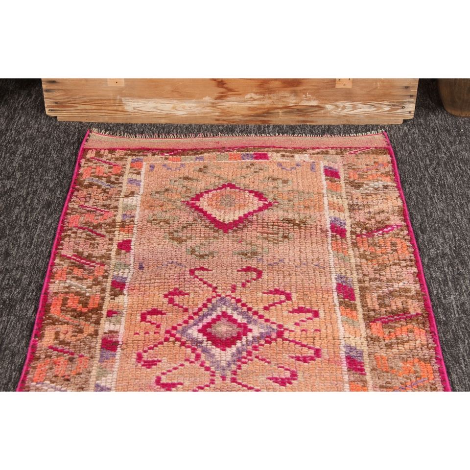 Alfombra Turca de 2.7x12 pies, Alfombra Pequeña Vintage, Alfombra Geométrica Naranja