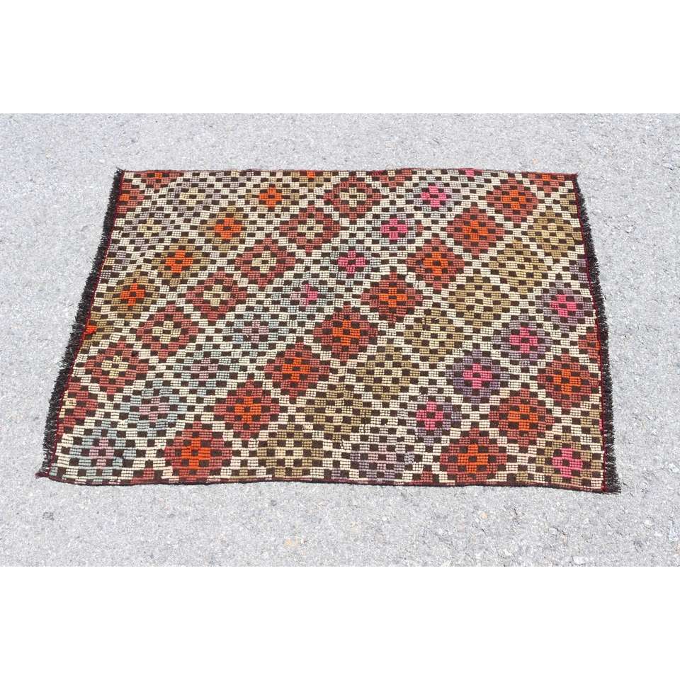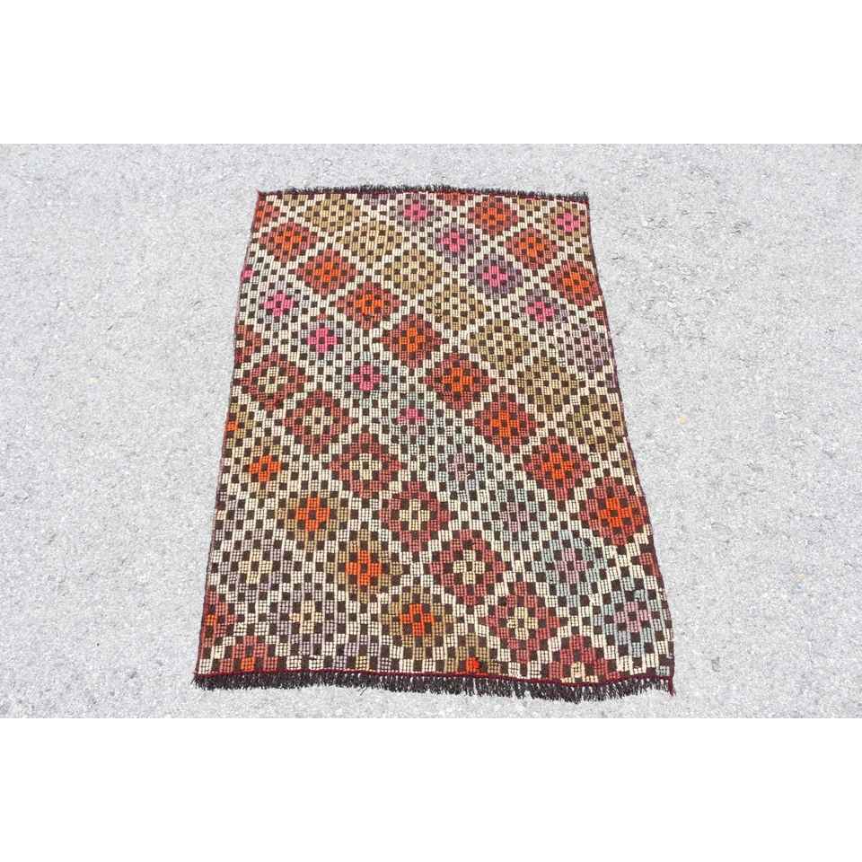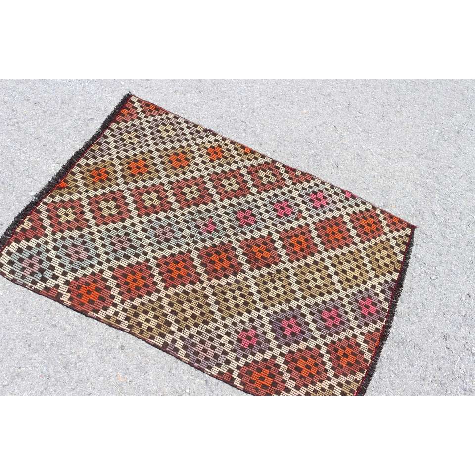 Alfombra de 2.7x3.8 pies, Alfombra Turca Vintage, Alfombra de Lana Kilim Marrón