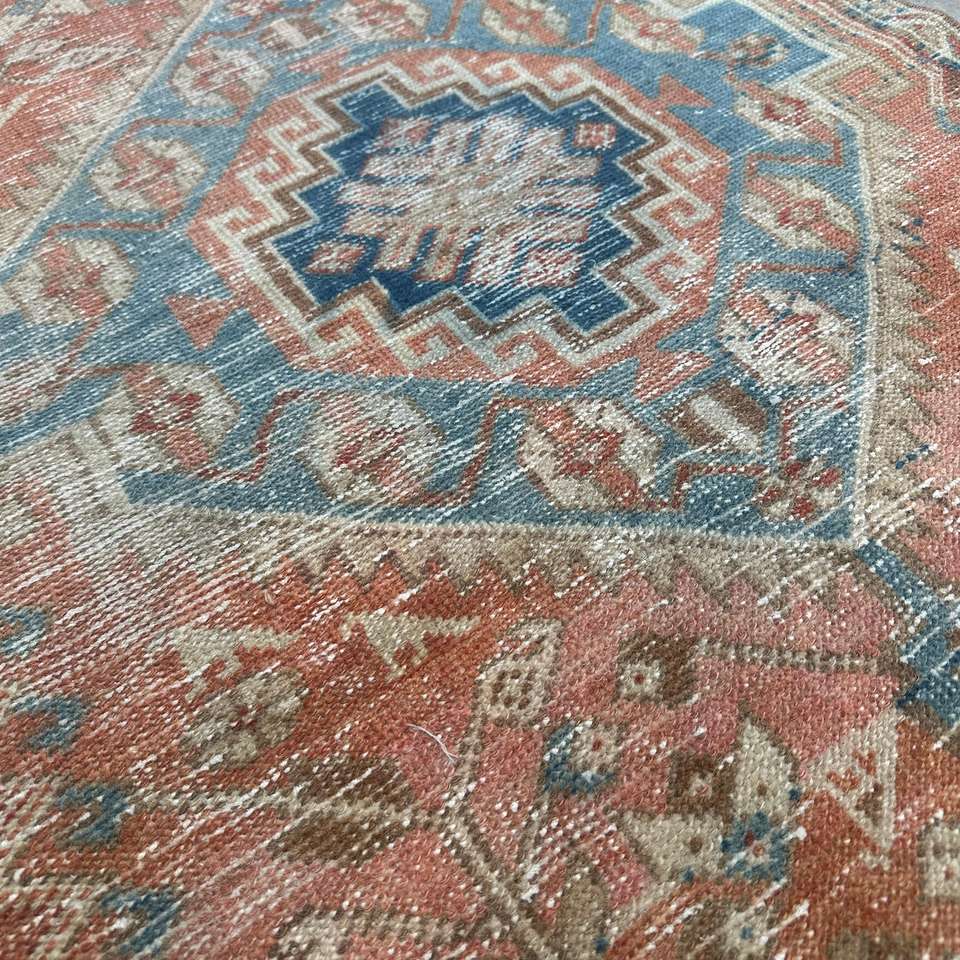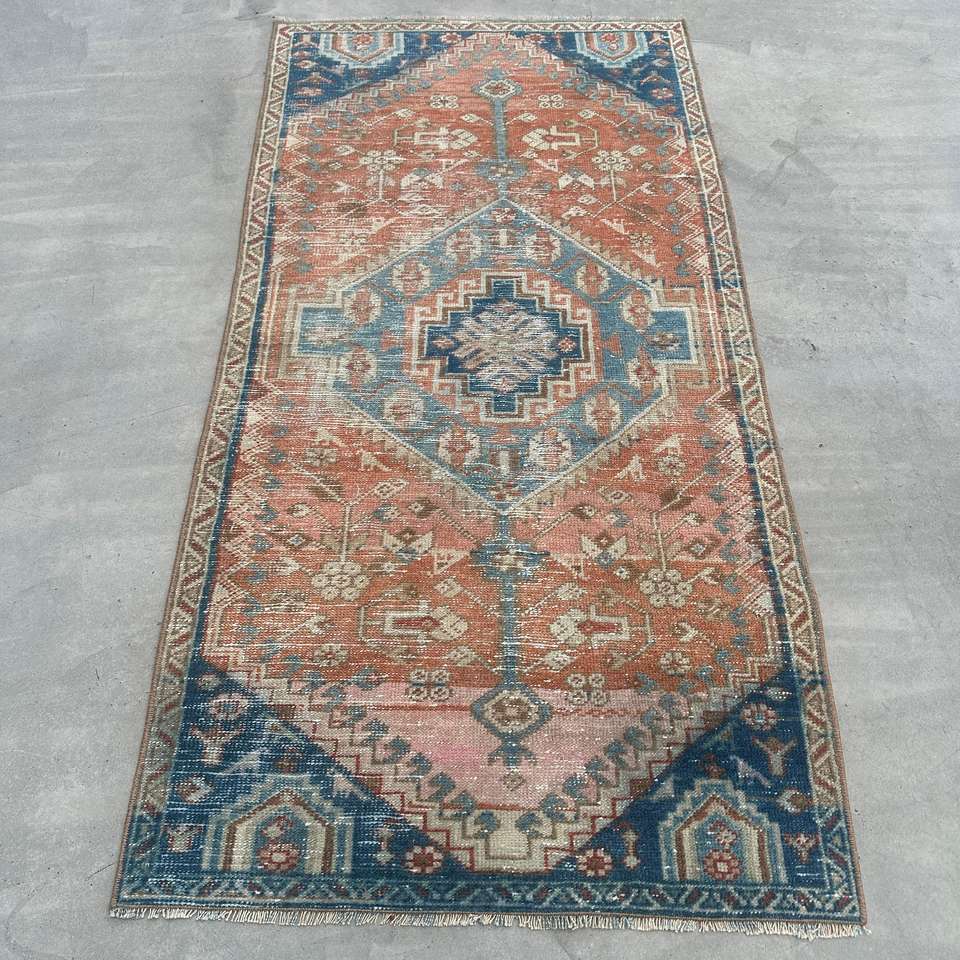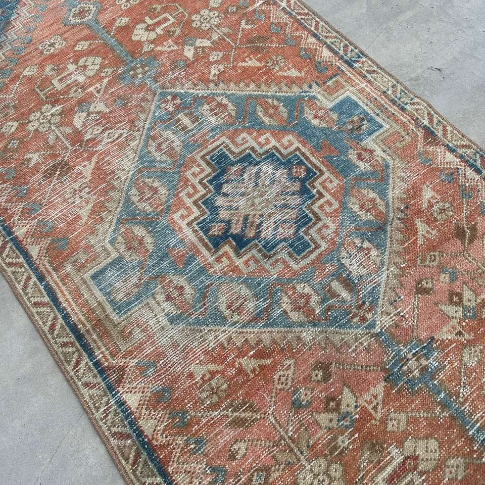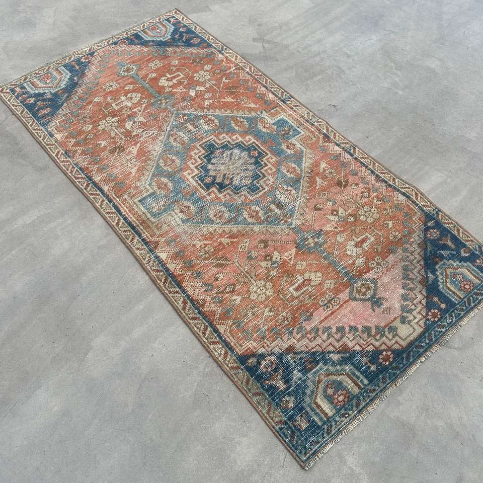 Alfombra Vintage de 2.7x5.6 pies, Alfombra Azul Abstracta de Lana