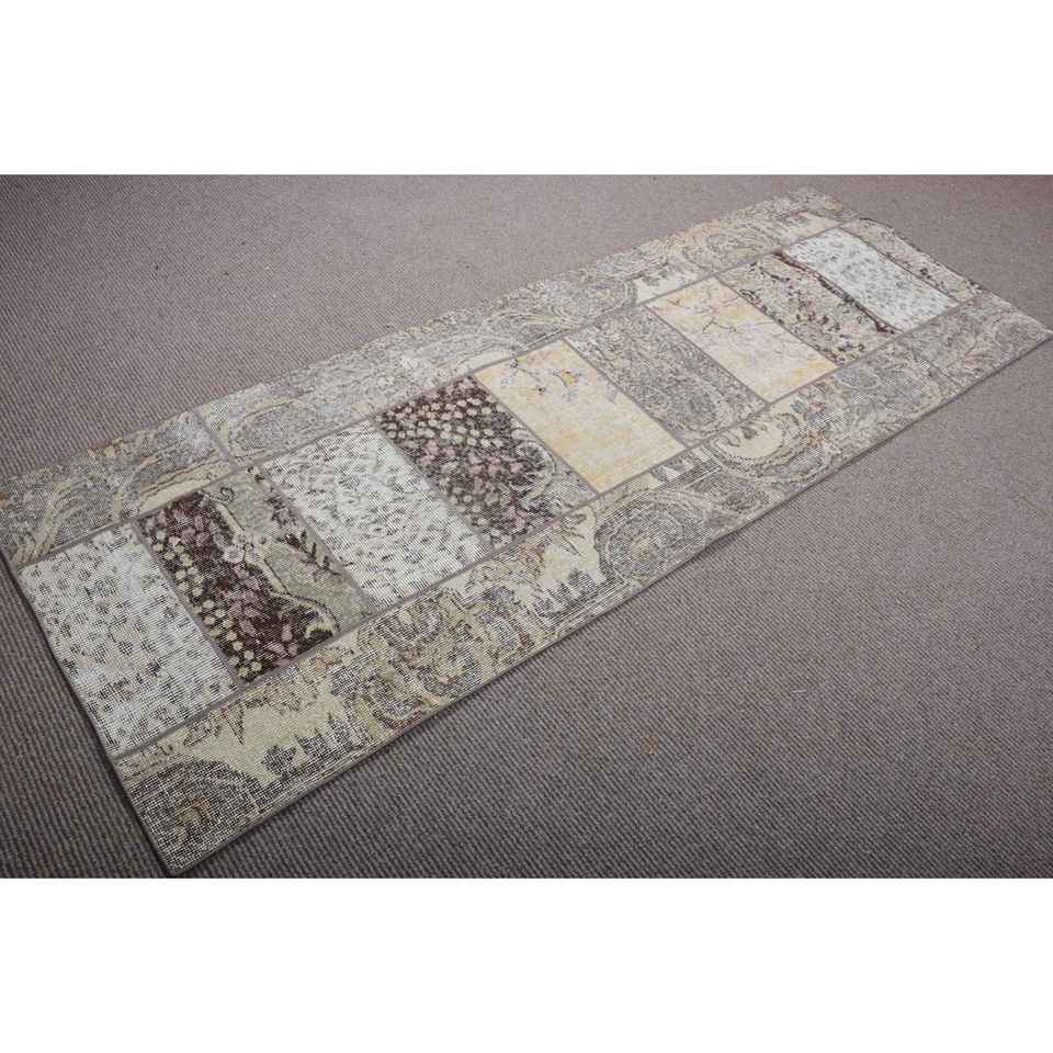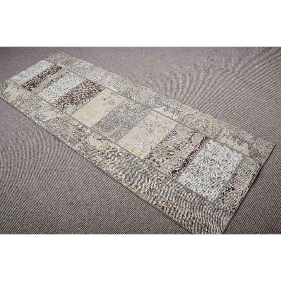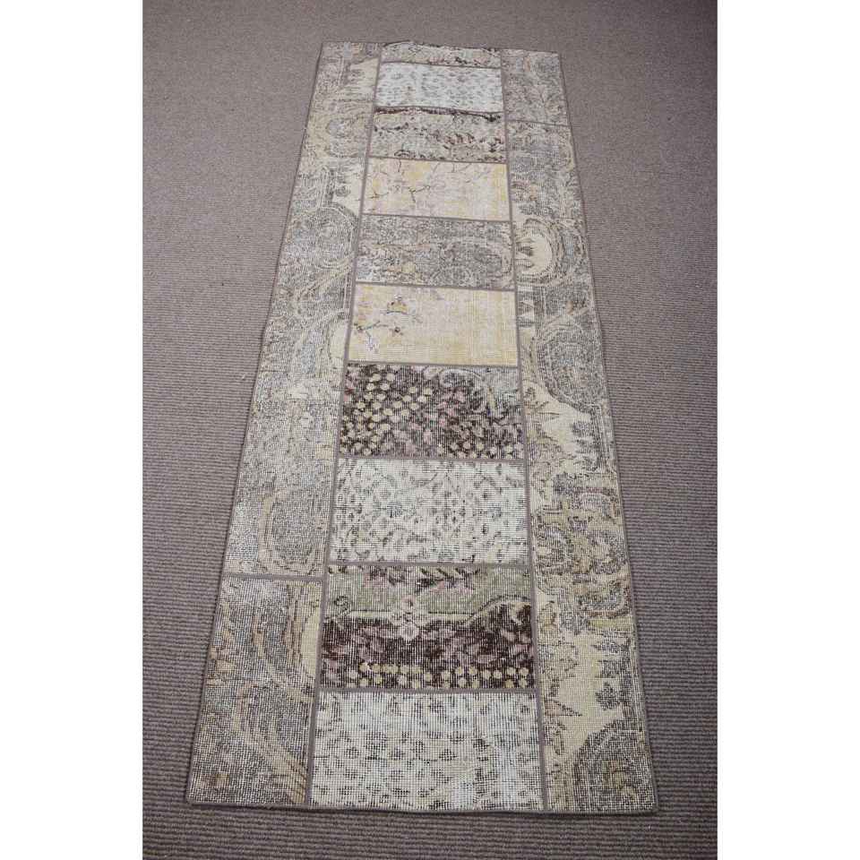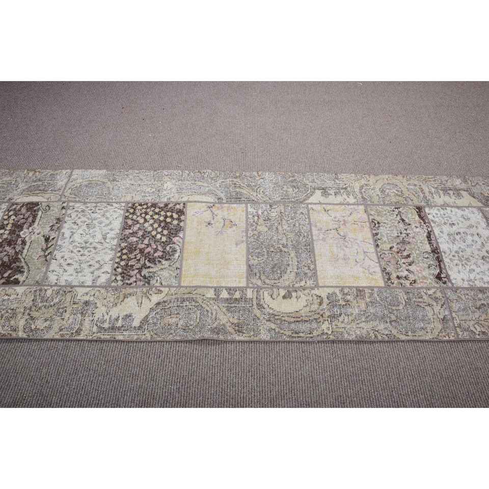 Alfombra de 2,7x7,4 pies, Alfombra Turca Vintage, Alfombra de Lana con Diseño de Plantas y Árboles Marrones