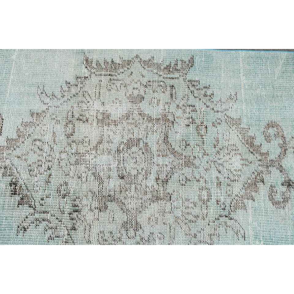 Alfombra Turca de 2.7x7.5 pies, Alfombra Vintage, Alfombra de Lana a Rayas Azul Gris