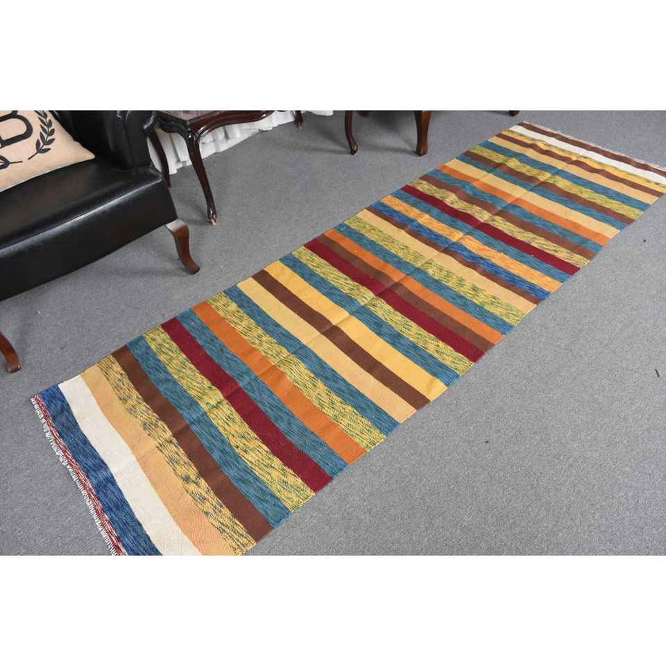 Alfombra de 2.7x8.5 pies, Alfombra Turca Vintage, Alfombra de Lana Marrón Ombré
