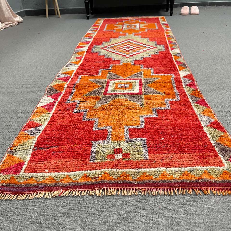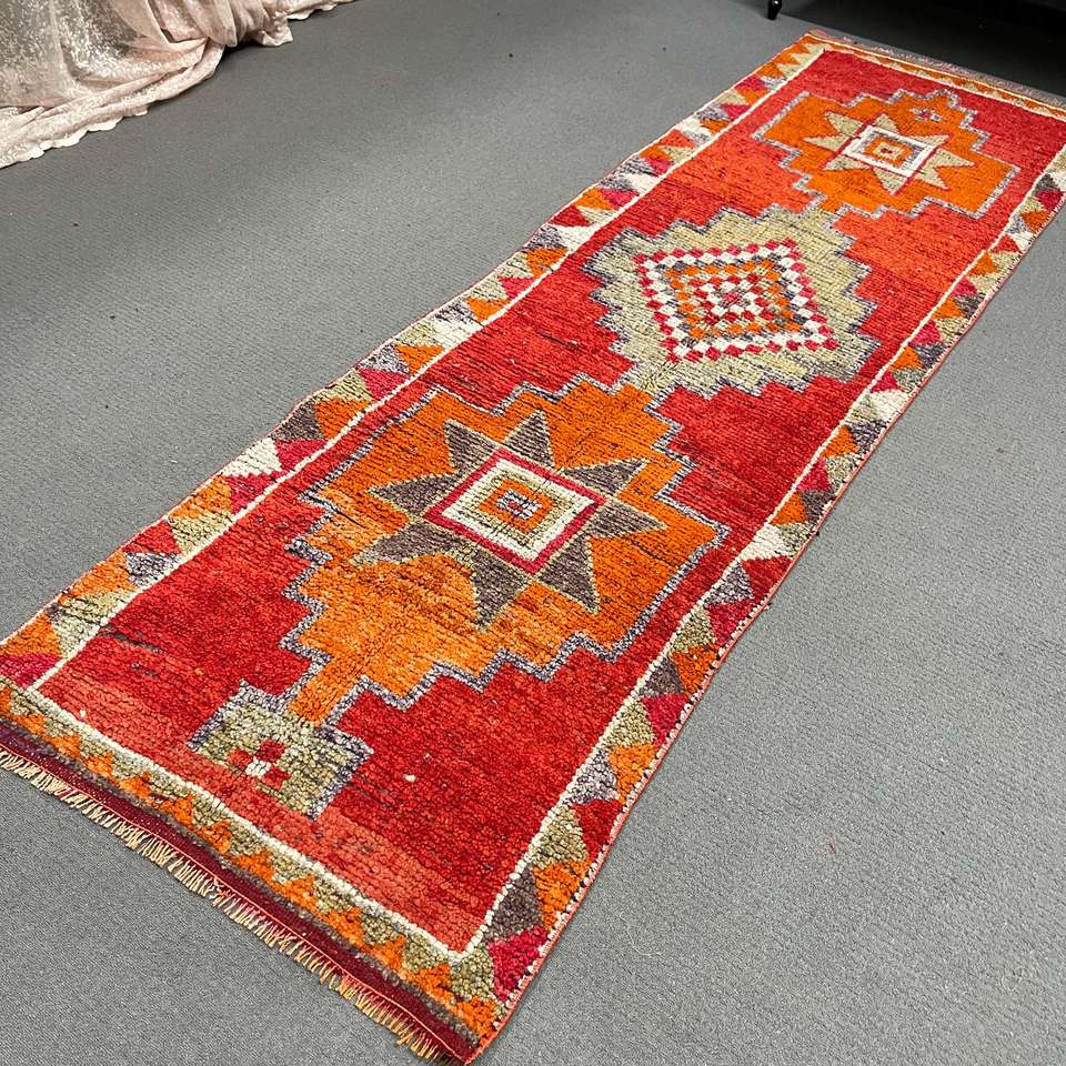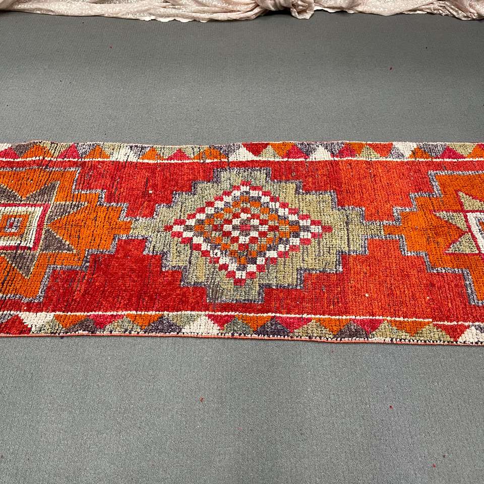 Alfombra de 2.7x9.4 pies, Alfombra Vintage, Alfombra con Estampado Animal Rojo