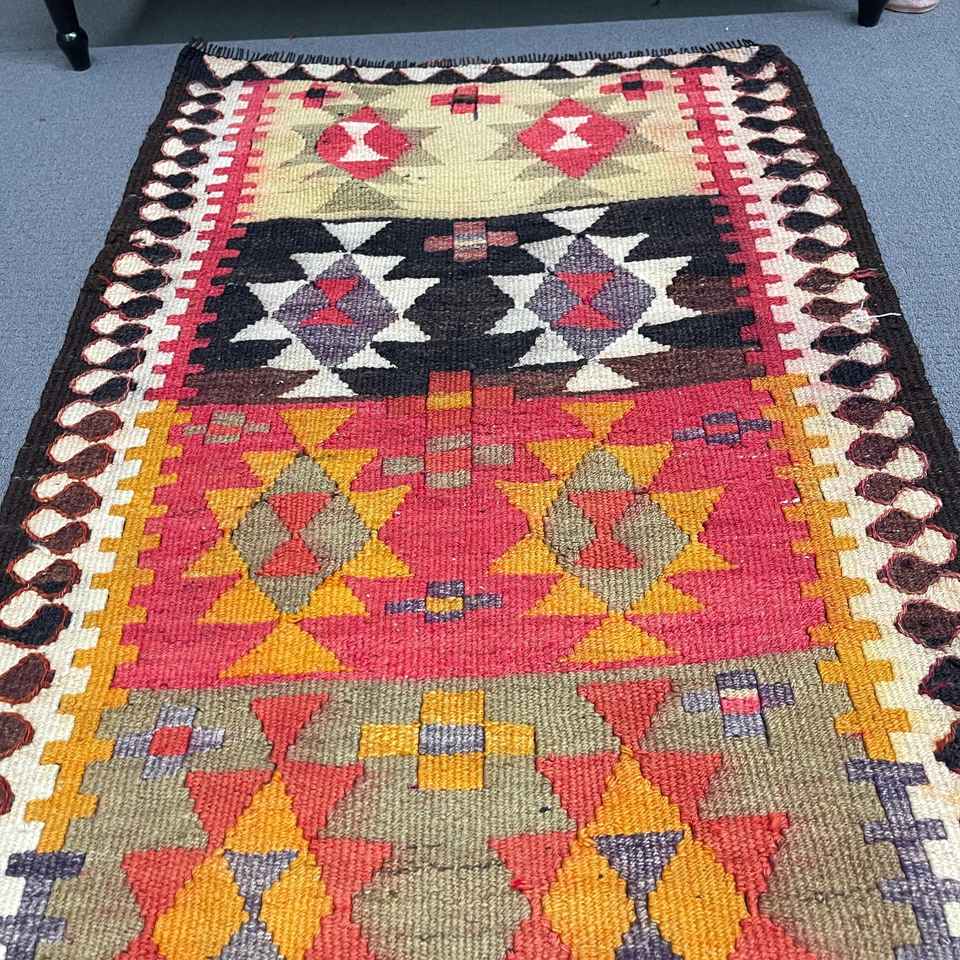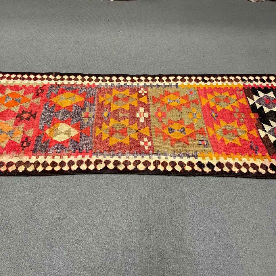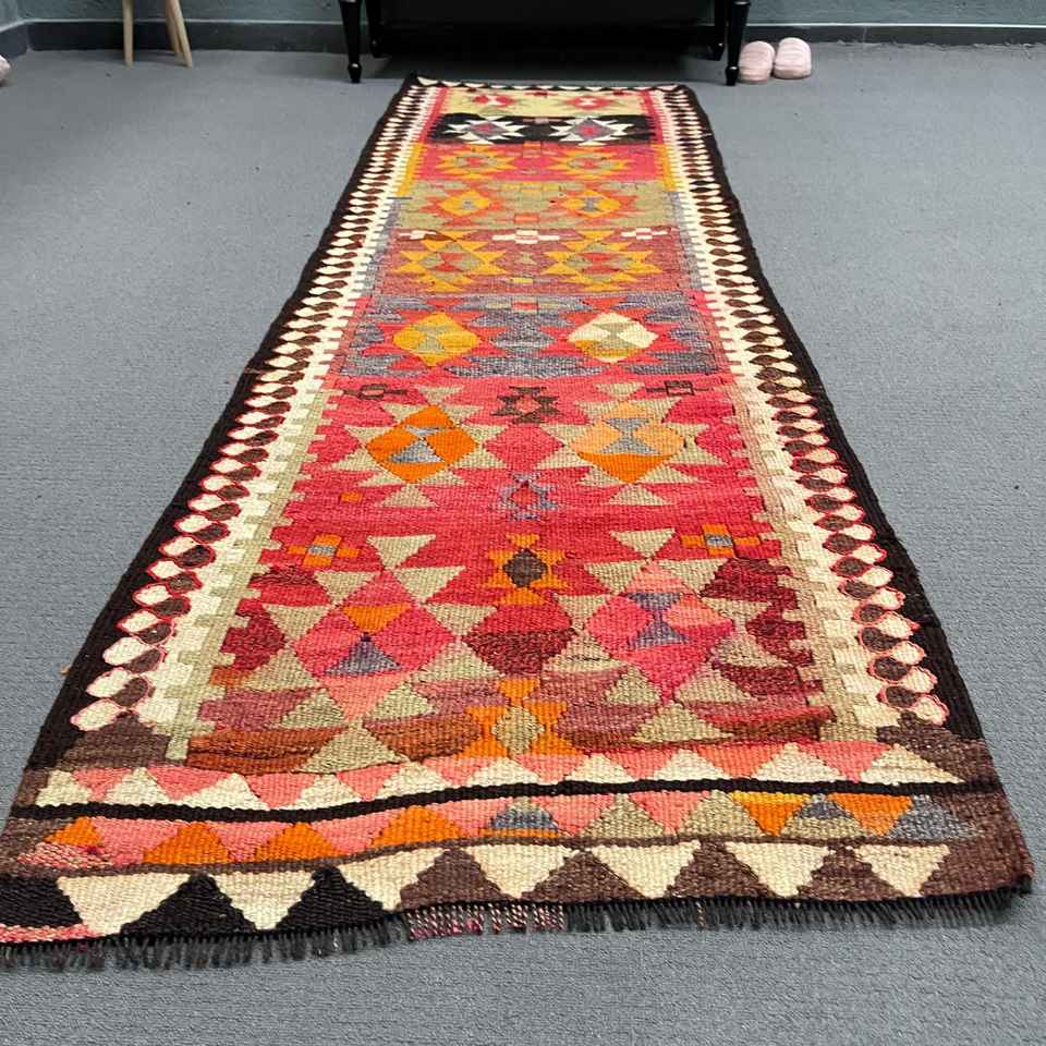 Alfombra de 2.7x9.4 pies, Alfombra Turca Vintage, Alfombra Roja con Diseño Floral