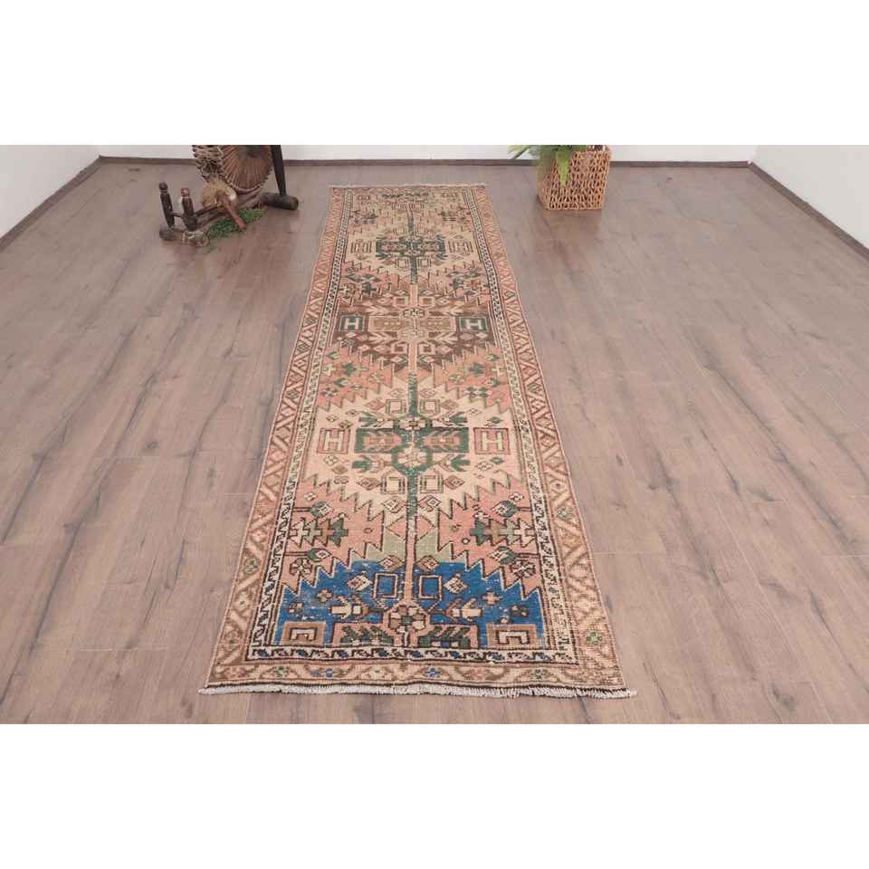 Alfombra de 2.8x10.4 pies, Alfombra Turca Vintage, Alfombra de Lana Azul