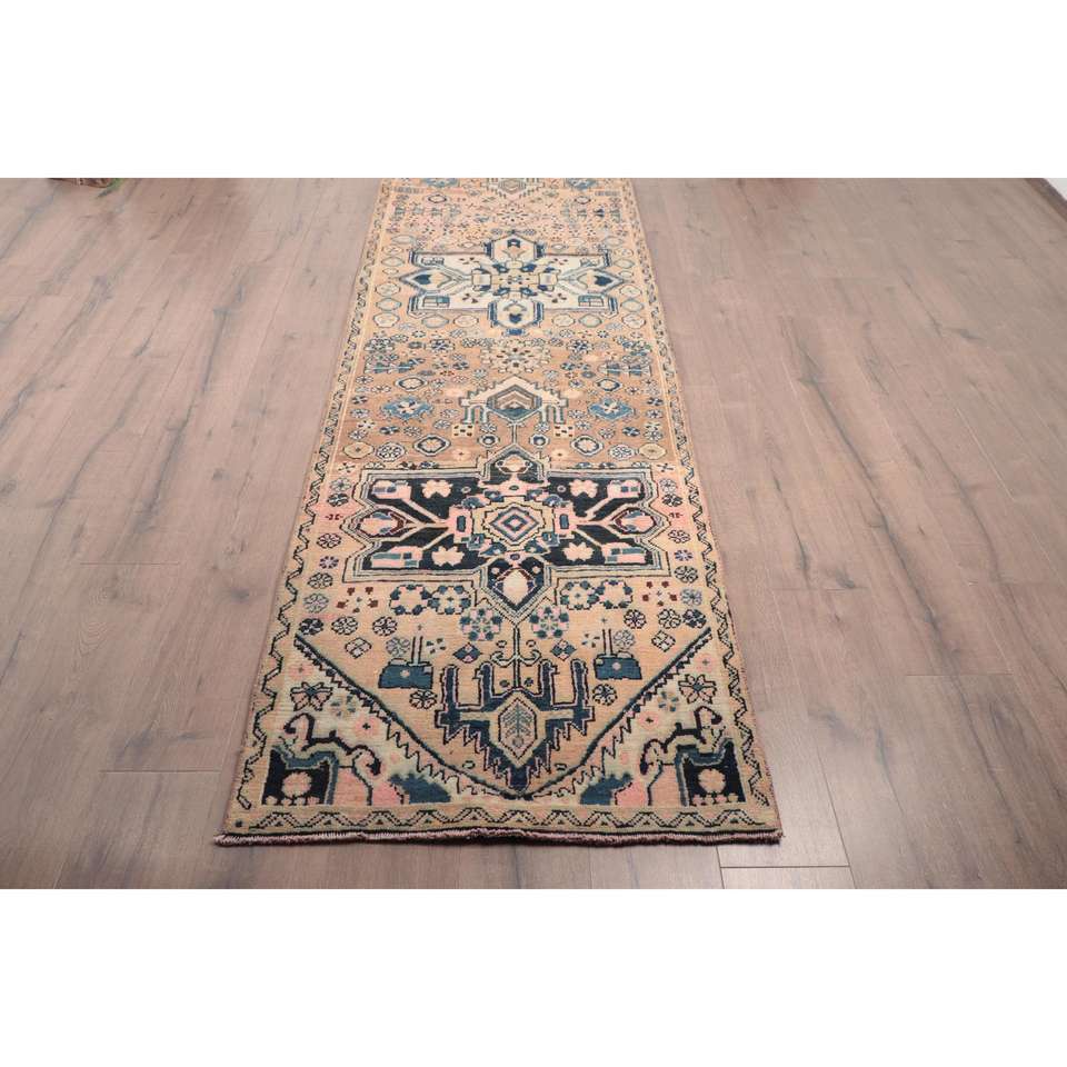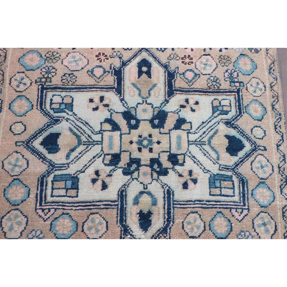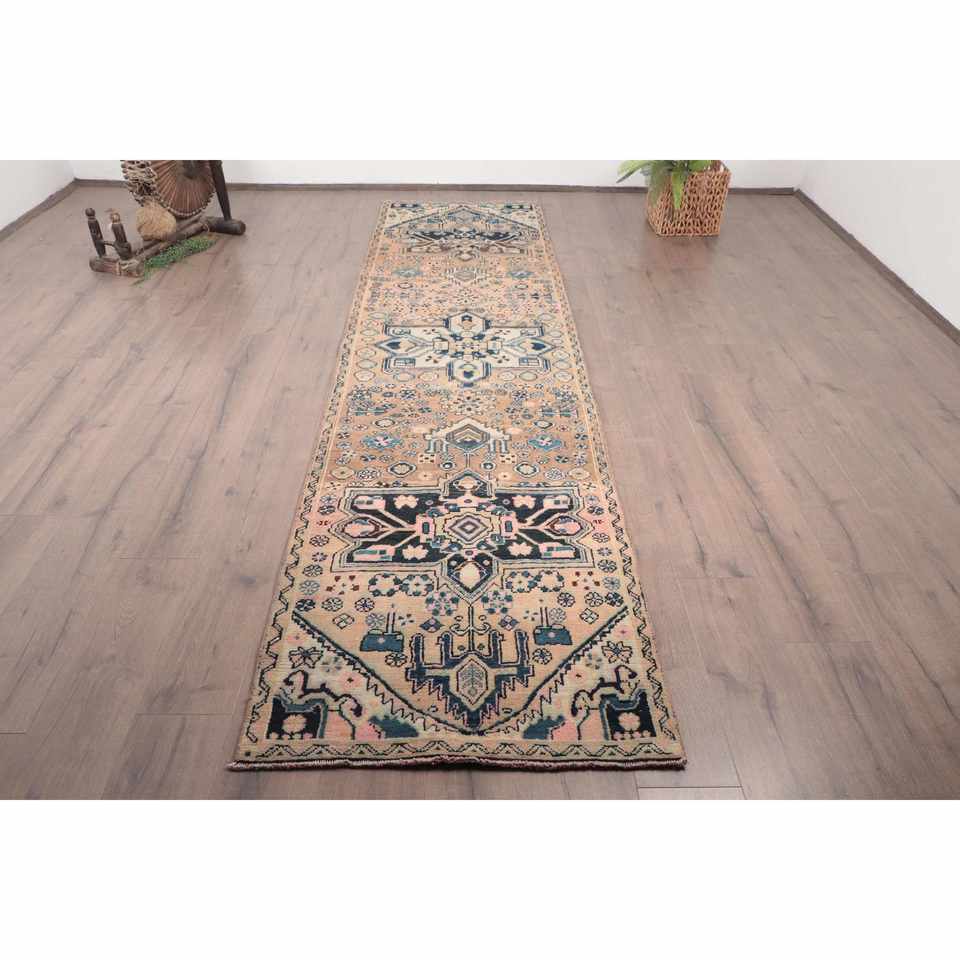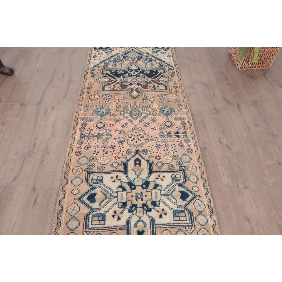 Alfombra de 2.8x10.9 pies, Alfombra Turca, Alfombra Azul Sólida