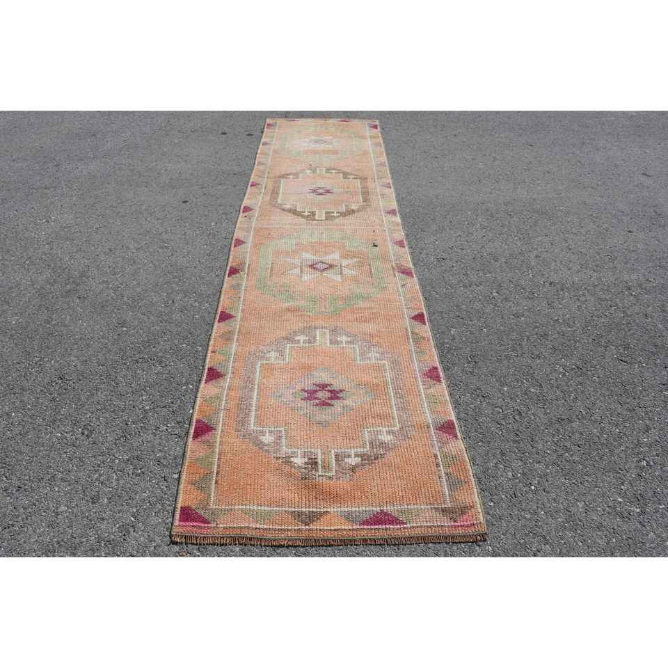 Alfombra de 2.8x11.2 pies, Alfombra Herki Vintage, Alfombra Marroquí de Lana Marrón Turca