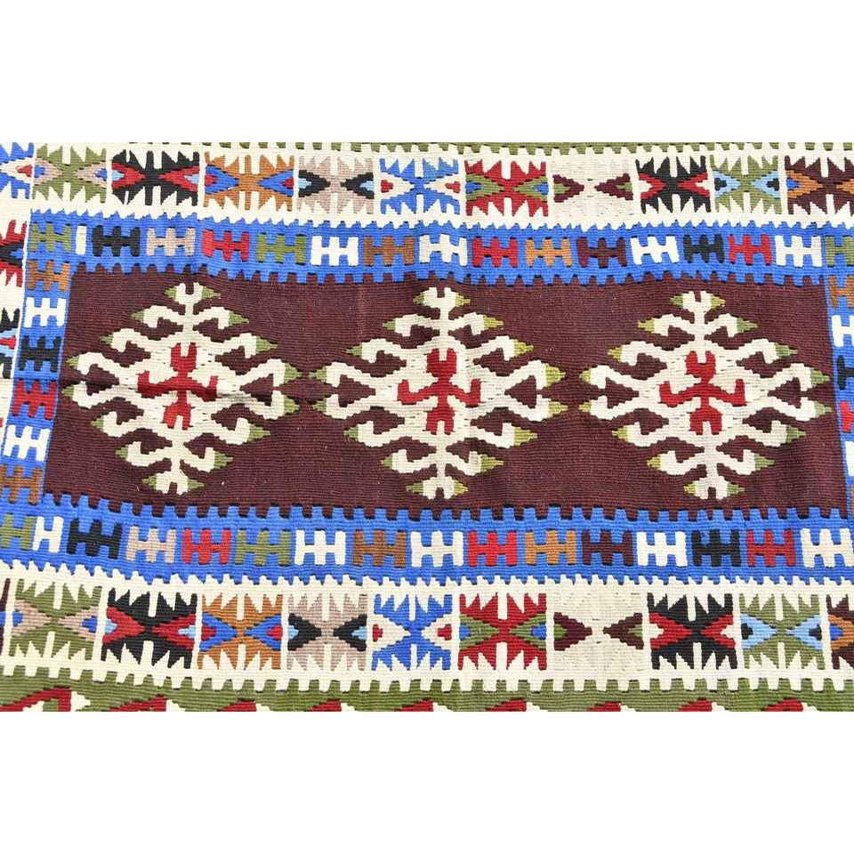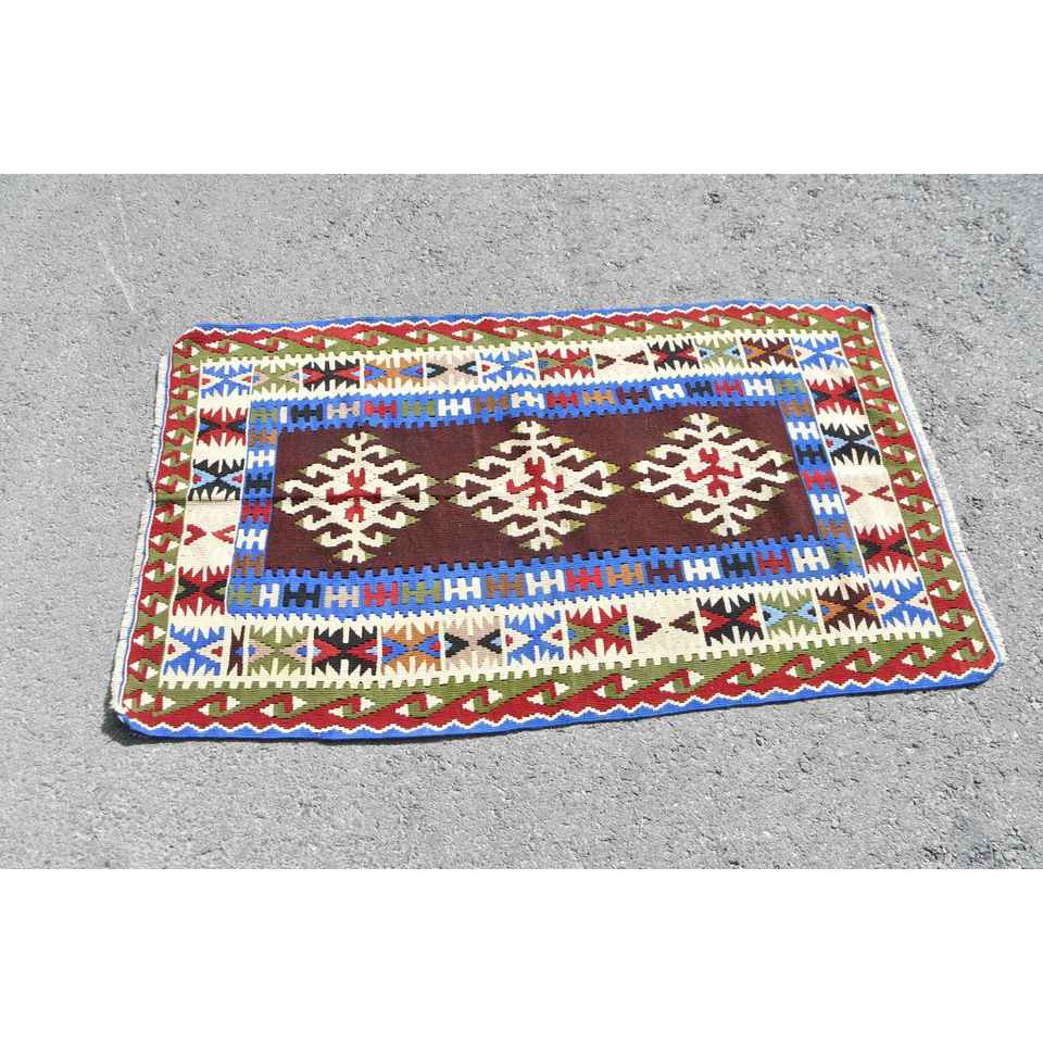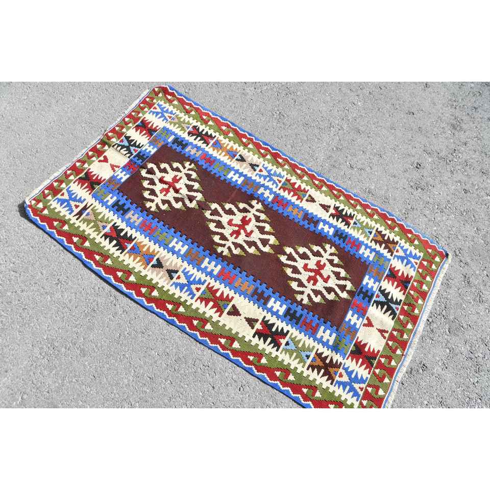 Alfombra Kilim de 2.8x4.6 pies, Alfombra Turca Vintage, Alfombra Floral Azul y Roja