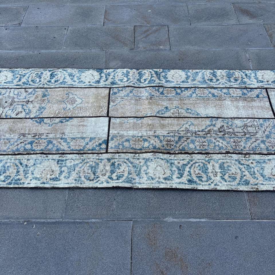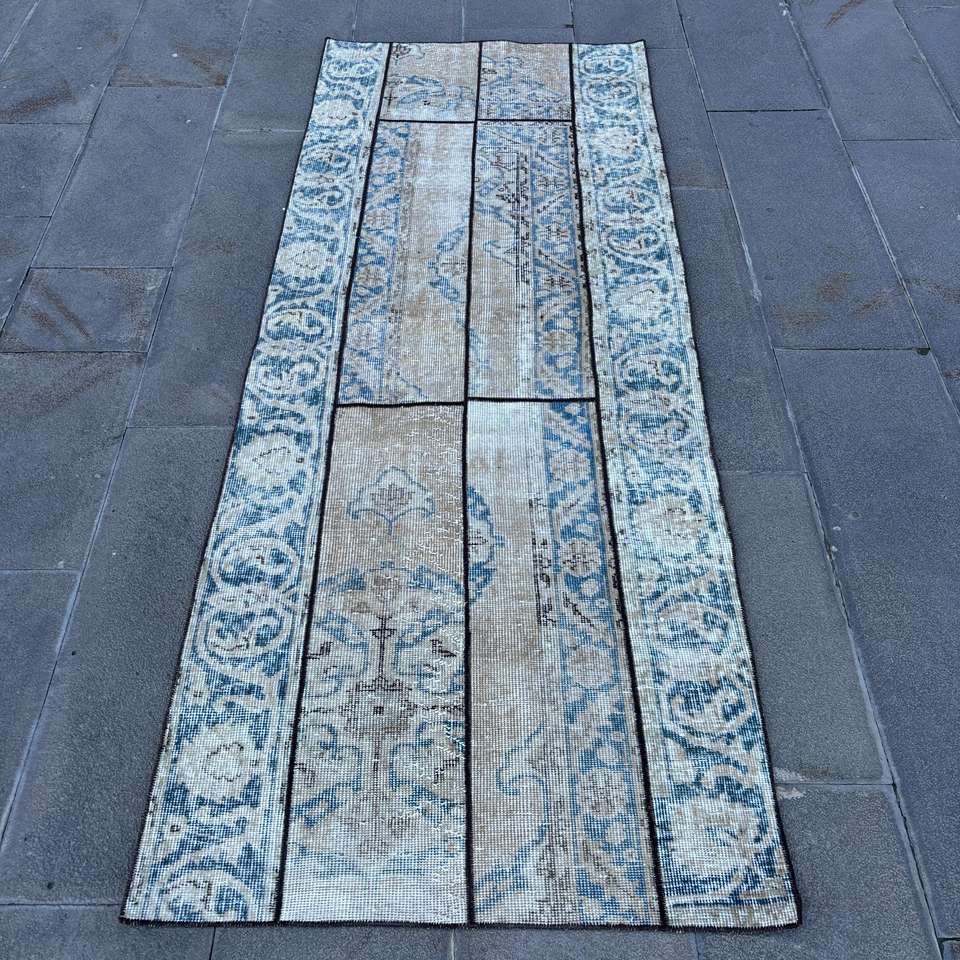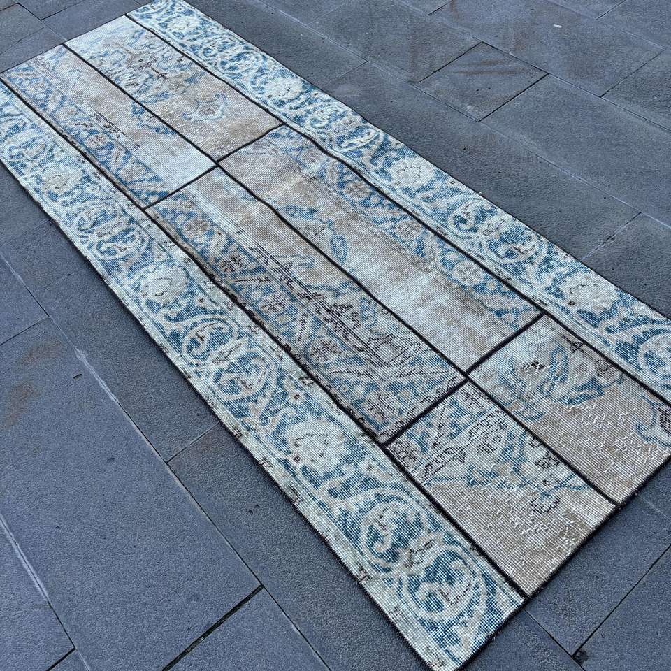 Alfombra de 2.8x7.3 pies, Alfombra Turca, Alfombra con Estampado Animal Azul