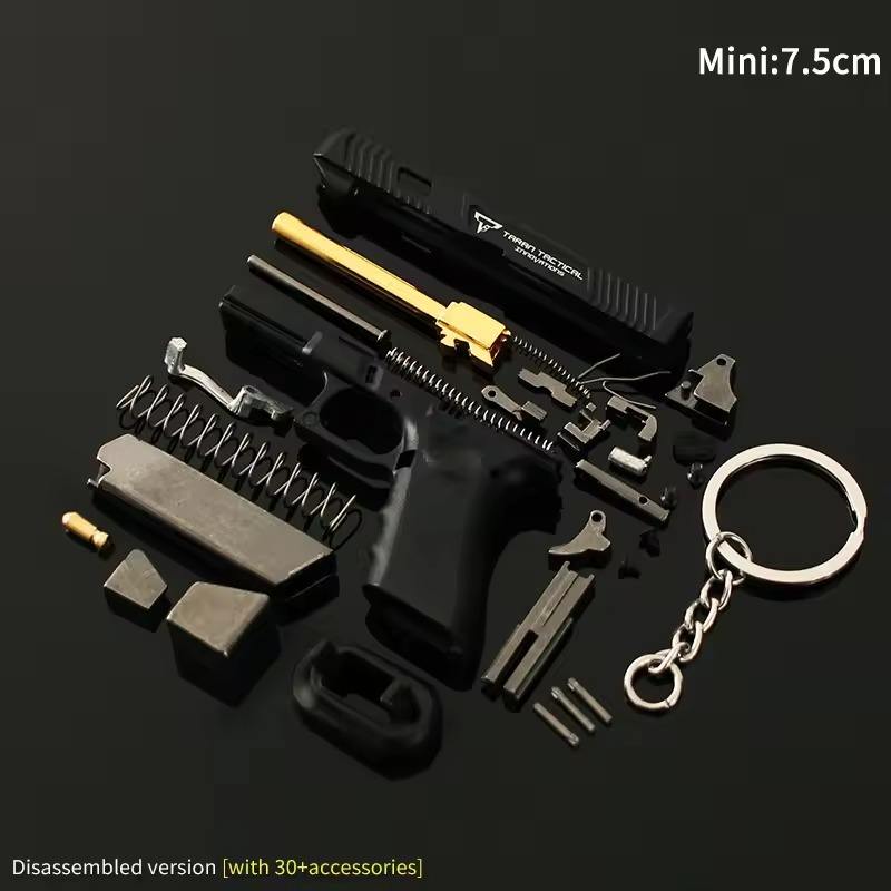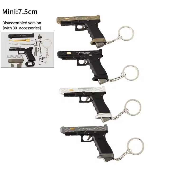 Llavero de pistola de juguete de 2.95 pulgadas con expulsión de casquillos TTi G34, llavero de metal con forma de pistola de juguete realista y económica, modelo de ensamblaje 1:3 para serrar a mano