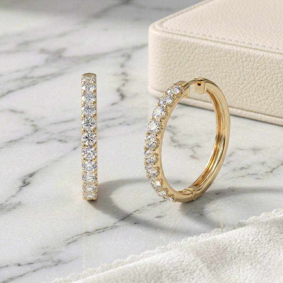 Pendientes de Aro con Diamantes de Corte Redondo de 2.95CTW con Engaste Compartido Tipo Eternity