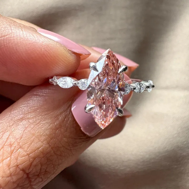 Anillo de Compromiso de Oro Sólido de 14K con Diamante Cultivado en Laboratorio de 2.9ct, Corte Marquesa Rosa Fantasía, Forma Redonda Blanca, Claridad VS, Certificado IGI, para Mujer