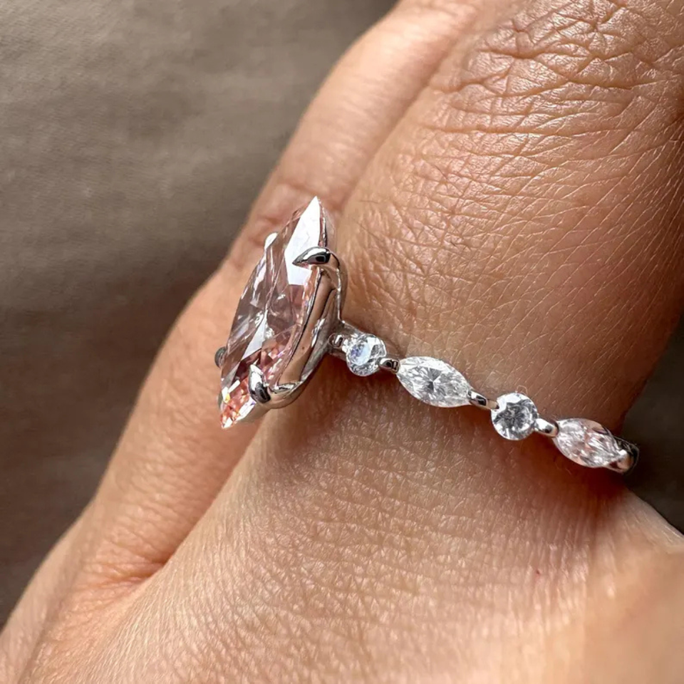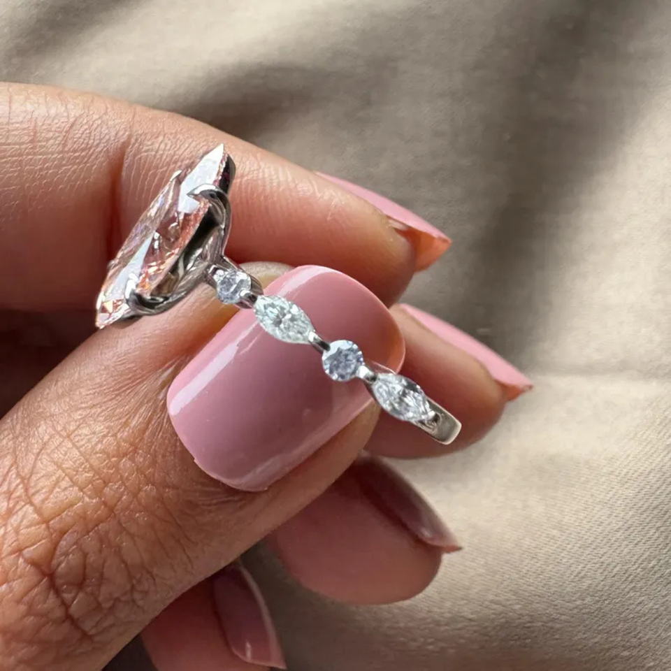 Anillo Elegante con Diamante de Laboratorio Marquesa y Redondo Blanco