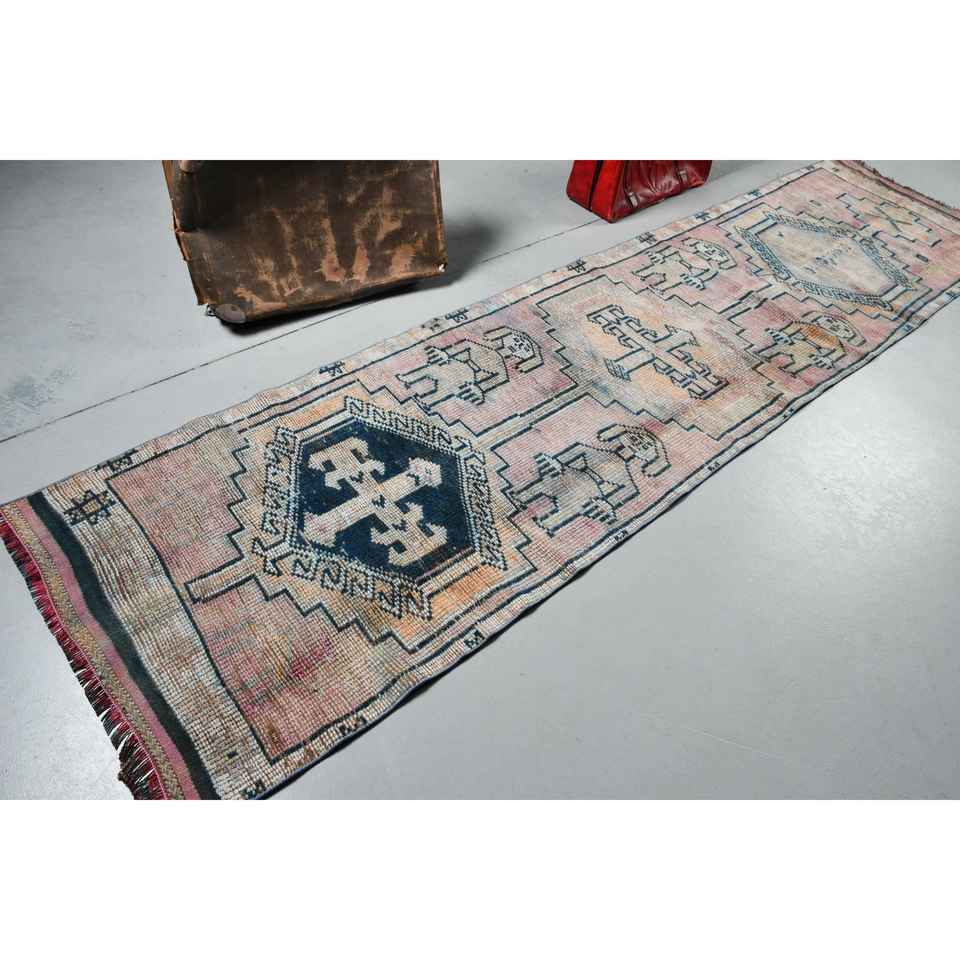 Alfombra de 2.9x11.8 pies, Alfombra Turca Vintage, Alfombra de Lana Herki Azul