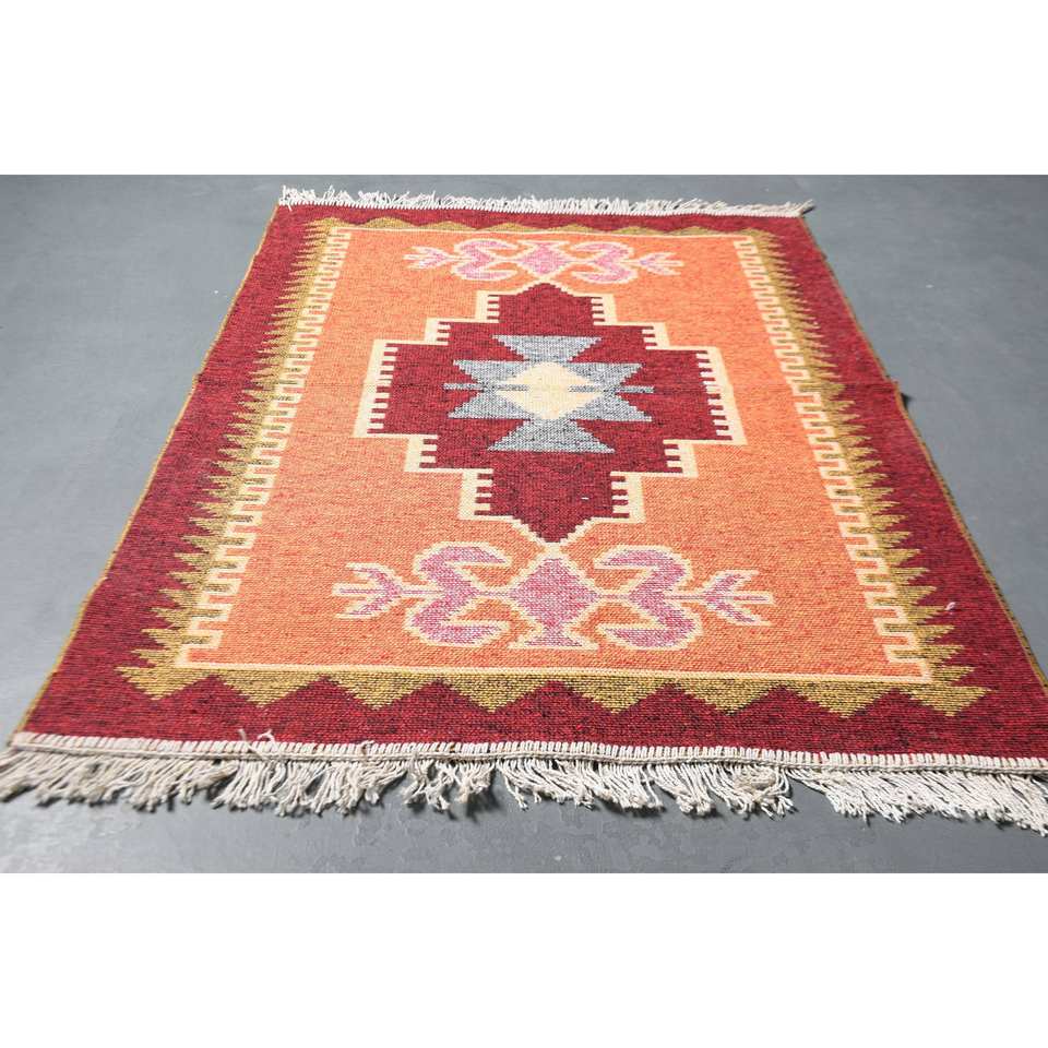 Alfombra pequeña vintage de 2.9x4 pies, alfombra turca de lana a rayas roja y naranja