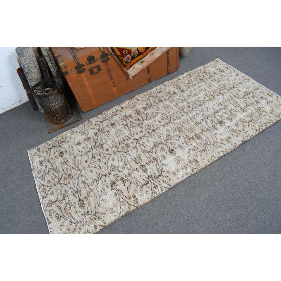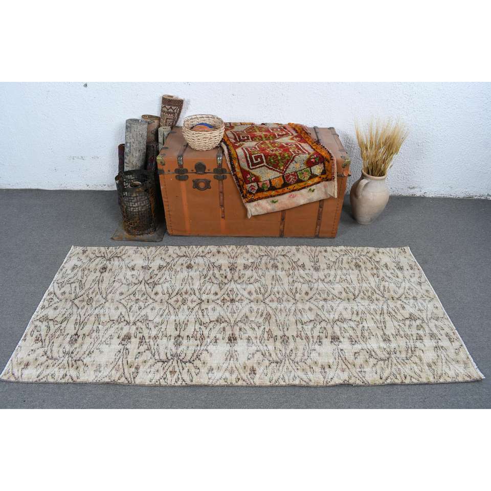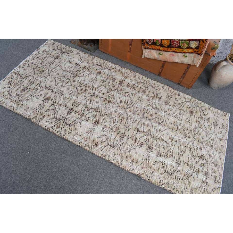 Alfombra Vintage de 2.9x6.2 pies, Alfombra Turca, Alfombra Oriental Blanca de Lana