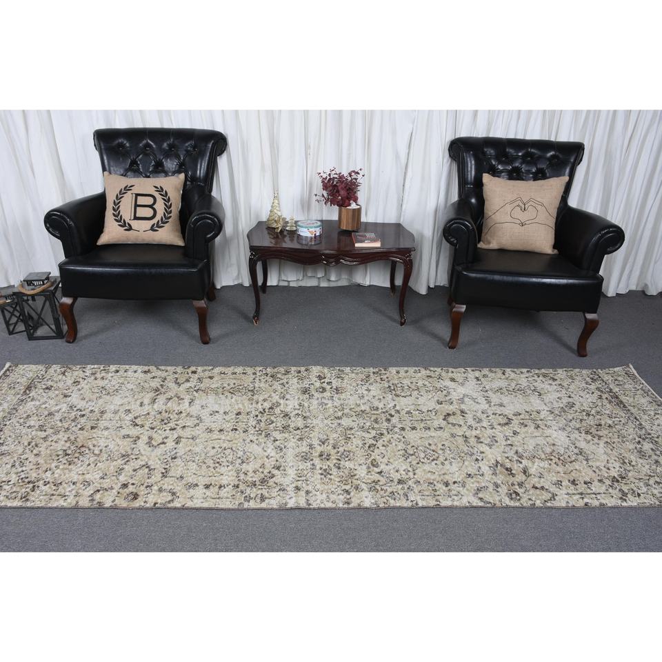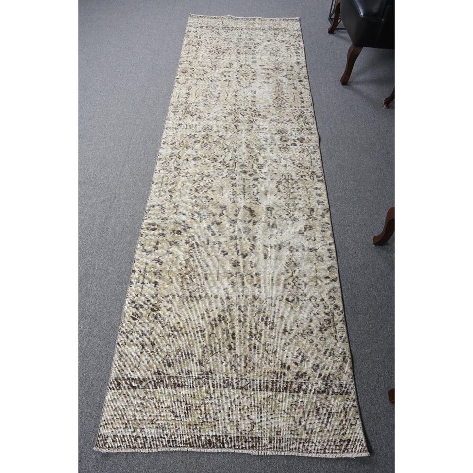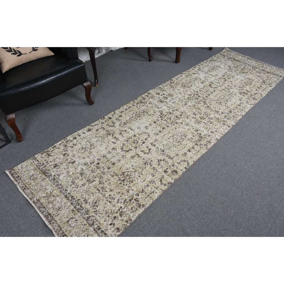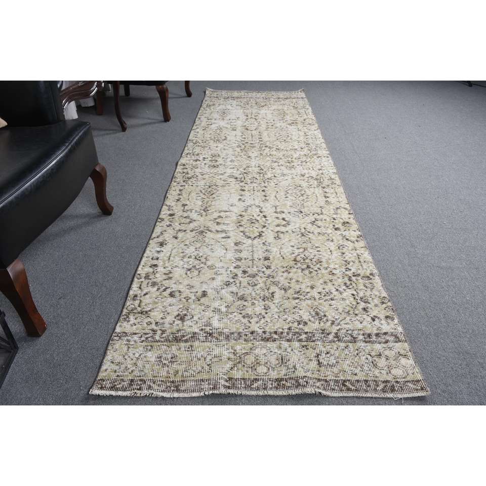 Alfombra Turca de 2.9x9.8 pies, Alfombra Vintage con Diseño Floral Marrón