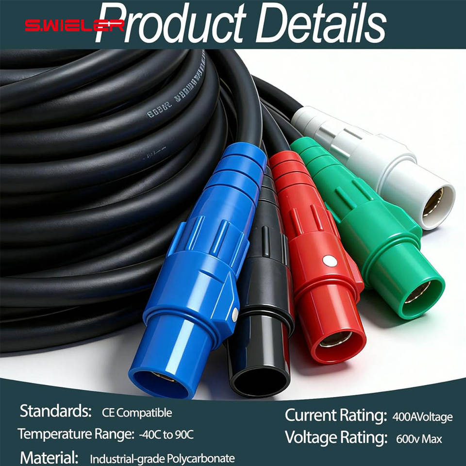 Cable de Extensión con Conector Cam-Lock Estilo Americano 2-AWG, Cable de Alimentación Macho a Hembra de 30 mm con Cable de Cobre de 400 A y 10 Pies