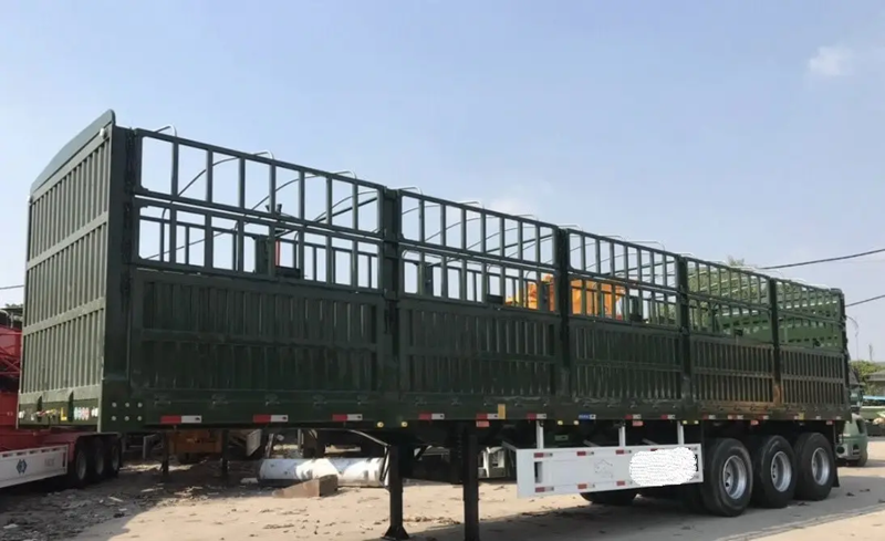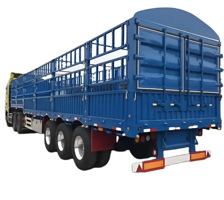 Semirremolque de 2, 3 y 4 Ejes para Carga de Almacén, Remolque con Reja para Carga de 40-100 Toneladas para Granja y Agricultura