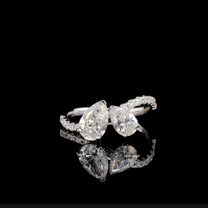 Anillo de Compromiso con Diamante Cultivado en Laboratorio de Corte Pera de 2 Quilates, Oro Sólido de 14K, Certificado SGL