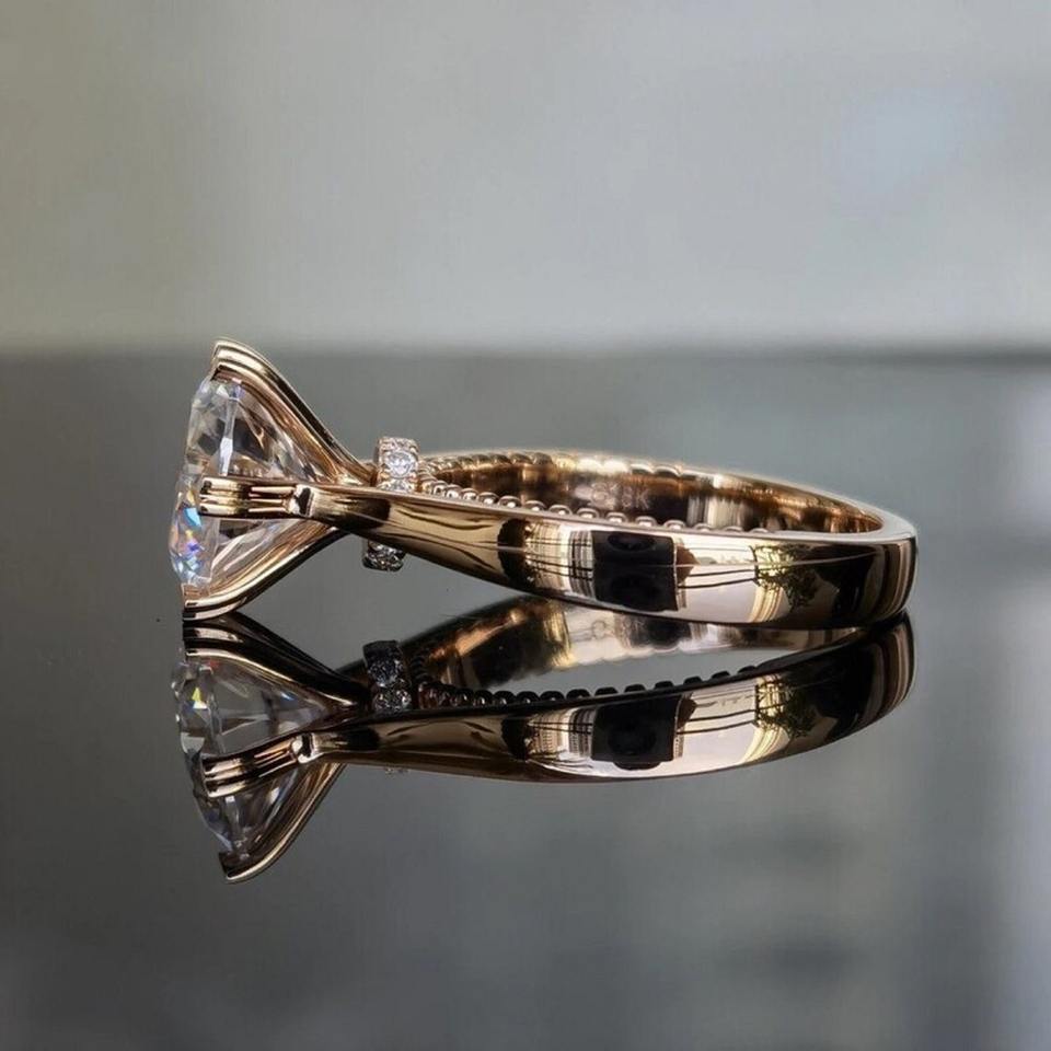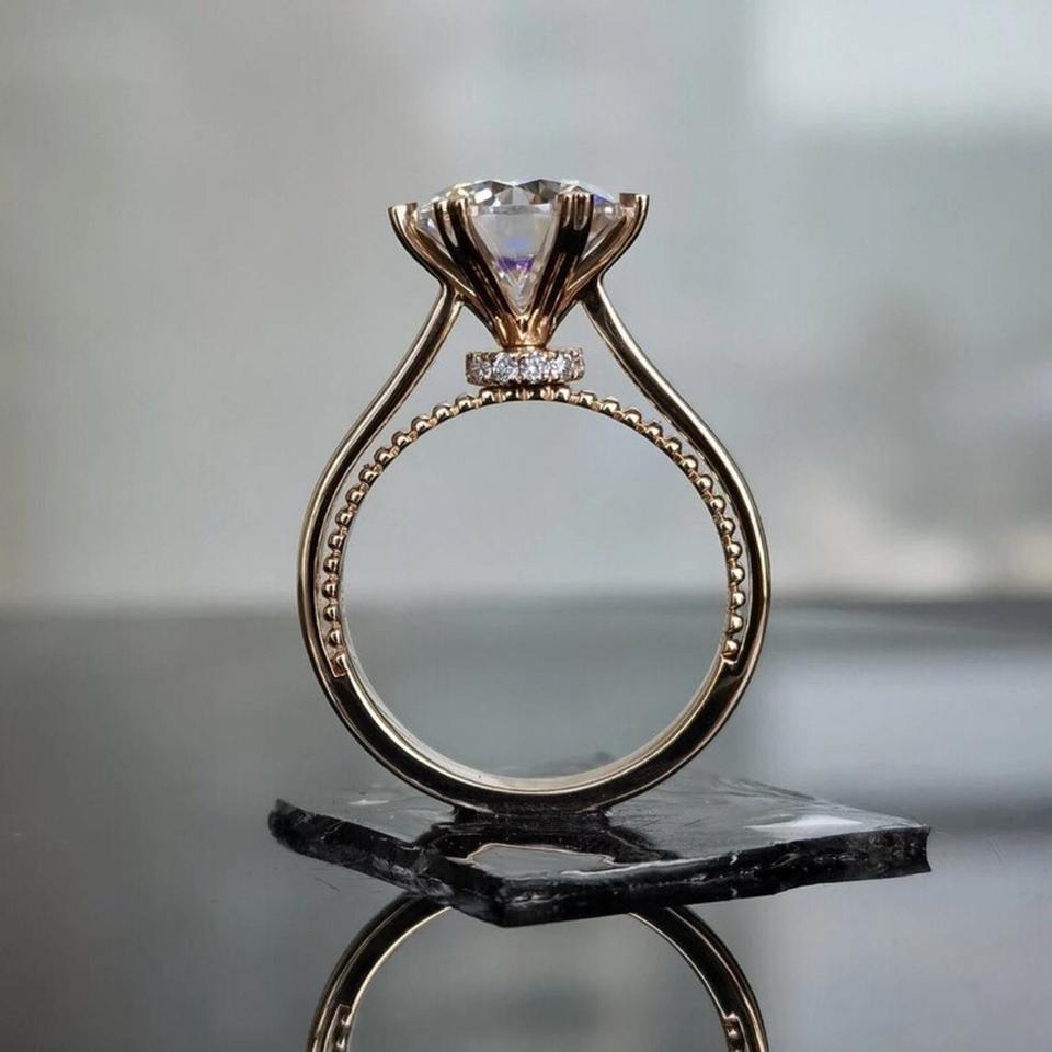 2 CT Round Lab Diamond Engagement Ring 14K Solid Rose Gold Hidden Halo Solitaire Ring 6 Heart Prongs Statement Bridal Ring
