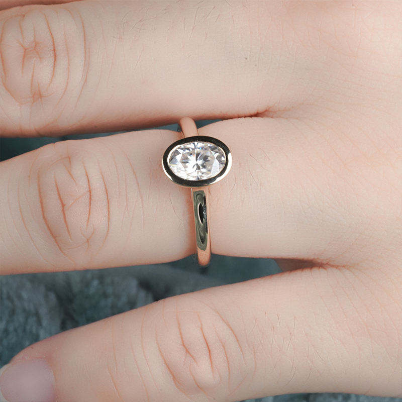 Anillo de Compromiso de Moissanita con Corte Oval Geométrico de 2 Quilates, Engaste de Bisel, VVS1, Solitario Clásico, Aniversario de Bodas para Mujer, Plata de Ley 925