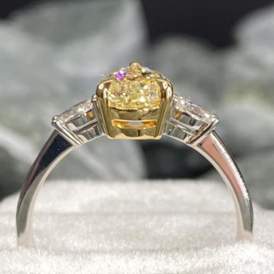 Nombre del producto:El laboratorio del color amarillo creció el anillo de boda de piedra del diamante tres