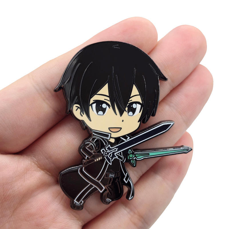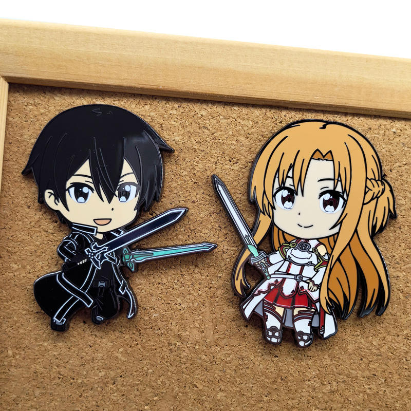 Pines de insignia de esmalte pulido duro de Metal de alta calidad de 2 colores y 6cm para los fanáticos del arte de espadas en línea como regalo
