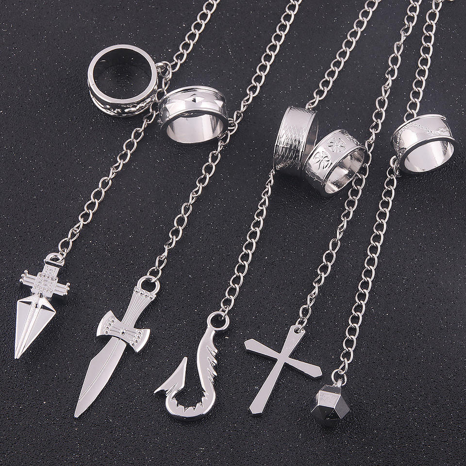 2 colores de alta calidad las cadenas de Kurapika con pulsera anillo de cinco dedos para Anime Hunter personaje Cosplay