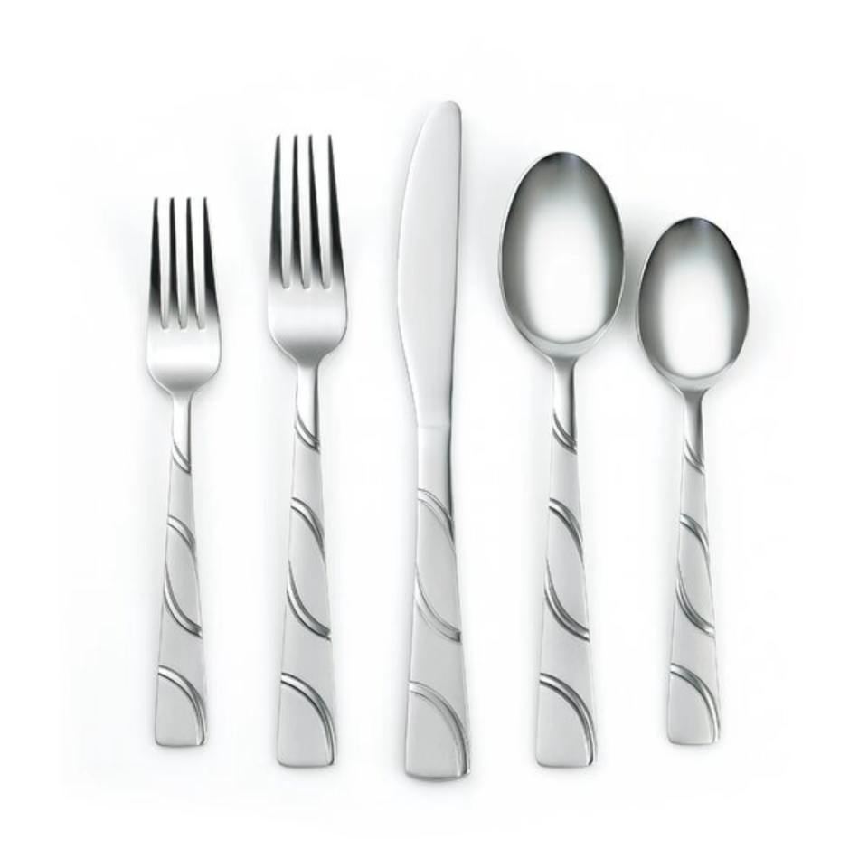 Juego de cubiertos de acero inoxidable con acabado Chapado en Color plateado y mango de 2 colores de 4 cucharas, tenedor, cuchillo, cubiertos aptos para lavavajillas