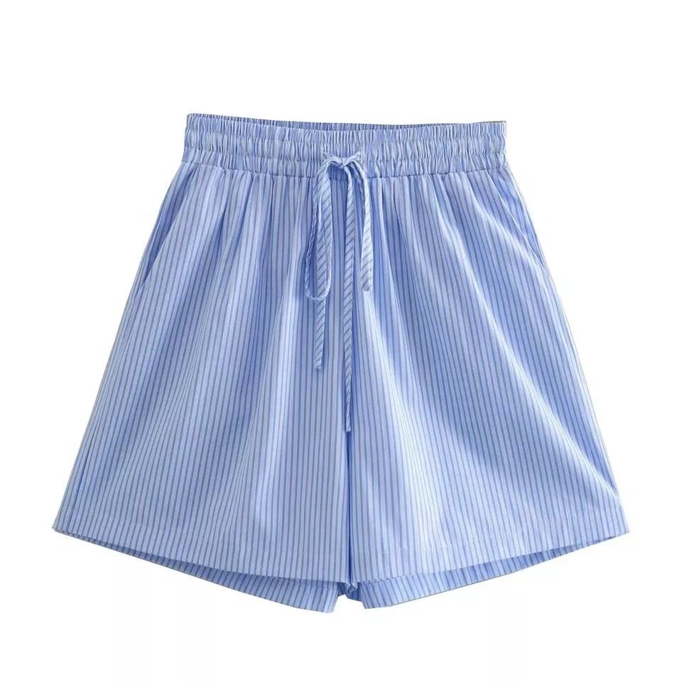 Pantalones cortos con cordón de alta calidad para mujer, shorts informales con estampado a rayas y cintura, 2 colores