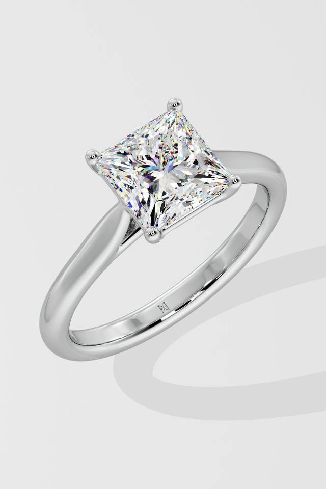 Anillo de compromiso y boda solitario de 2 quilates con corte princesa creado en laboratorio, engaste clásico de 4 puntas, minimalista, de plata, certificado y elegante.