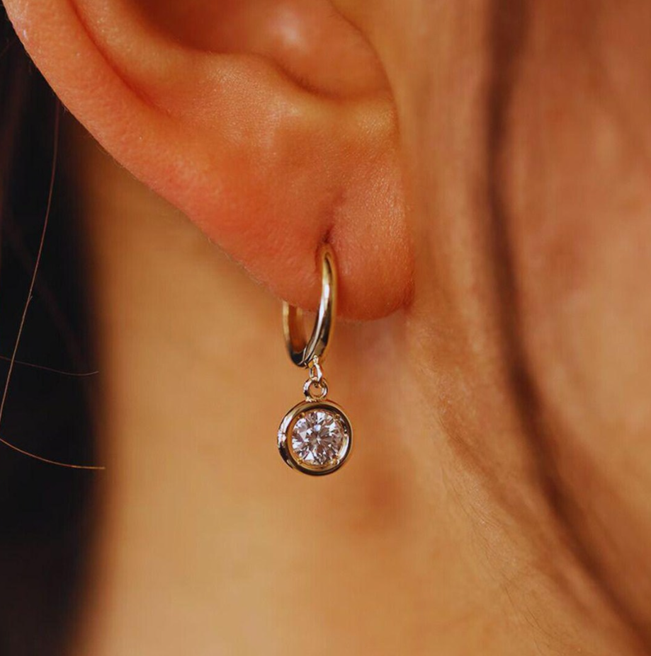 Pendientes de aro colgantes con diamantes cultivados en laboratorio de corte redondo de 2 quilates, con engaste de bisel, de oro blanco macizo de 14k para mujer.