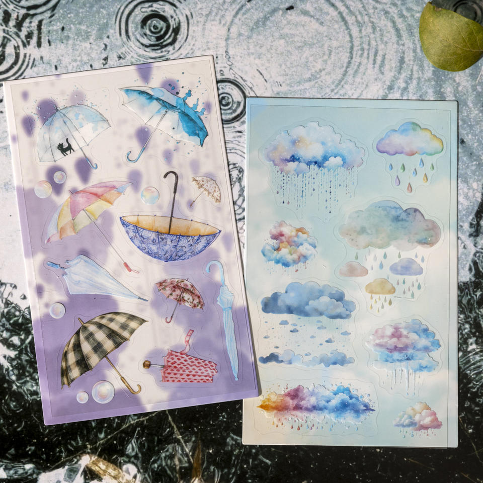 2 pegatinas troqueladas por paquete después de la lluvia Qingning Series lluvia manual decoración Ins pegatinas