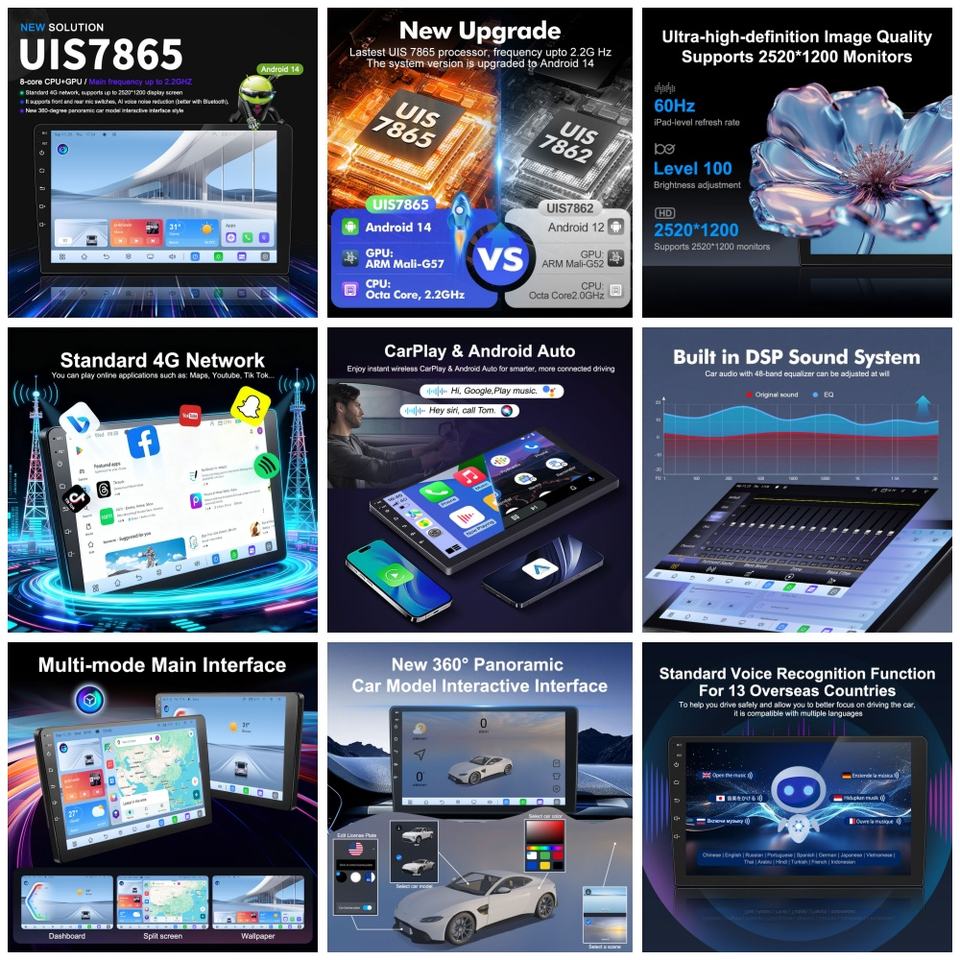 Radio para Auto Android 14 de 2 Din, Carplay Inalámbrico, Android Auto, Octa Core de 2.2GHz, DSP de 48 Bandas, Cámara 360 Integrada, Estéreo para Auto