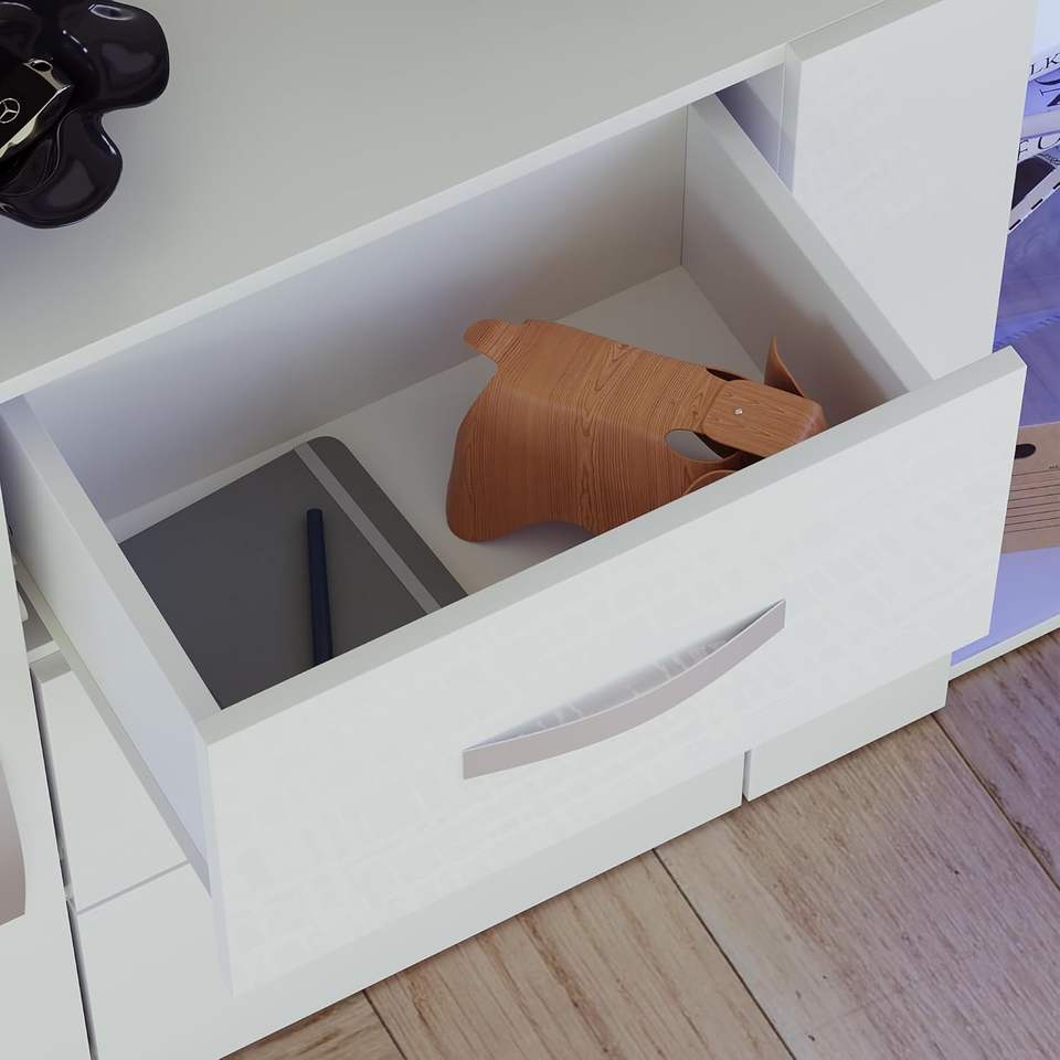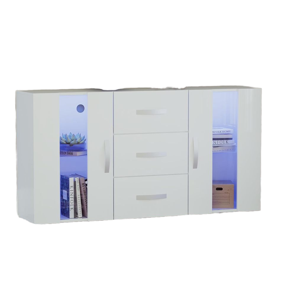 Aparador Moderno de 2 Puertas y 3 Cajones con Panel de Madera LED, Gran Capacidad, Luces RGB Blancas, Acabado Mate, Ecológico para Sala de Estar
