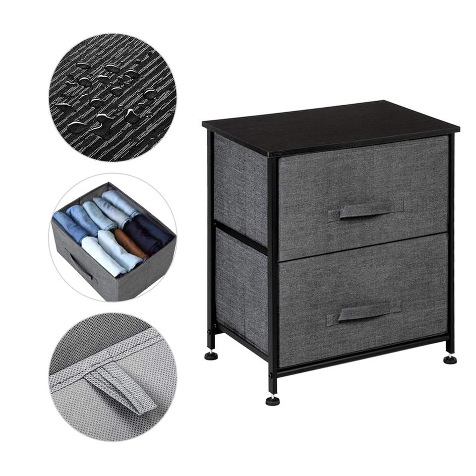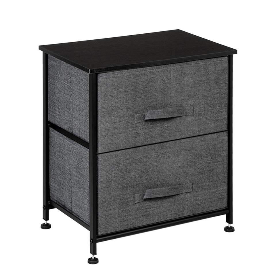 Mesa de Noche con 2 Cajones, Estructura de Acero Resistente, Superficie de Madera, Organizador con Contenedores de Tela Fáciles de Abrir, para Almacenamiento en el Dormitorio