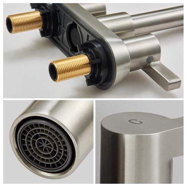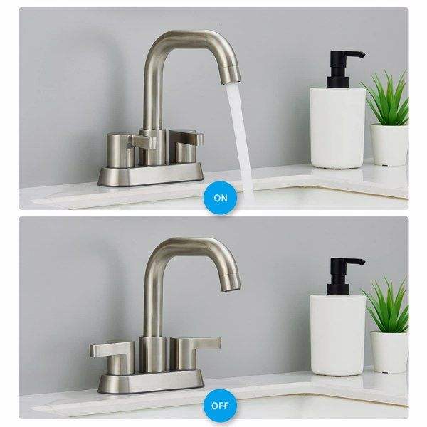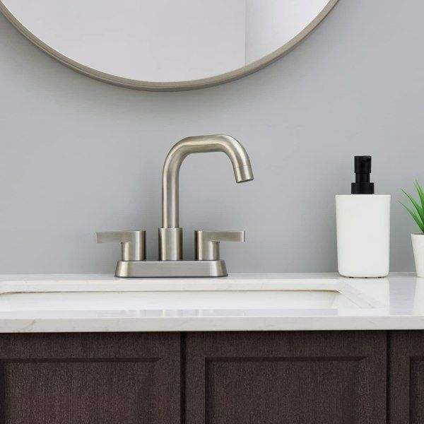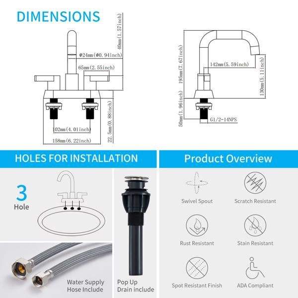 Grifo de Baño de 4 Pulgadas con 2 Manijas, Níquel Cepillado, de 3 Orificios, con Desagüe Pop-Up y Líneas de Suministro de Agua